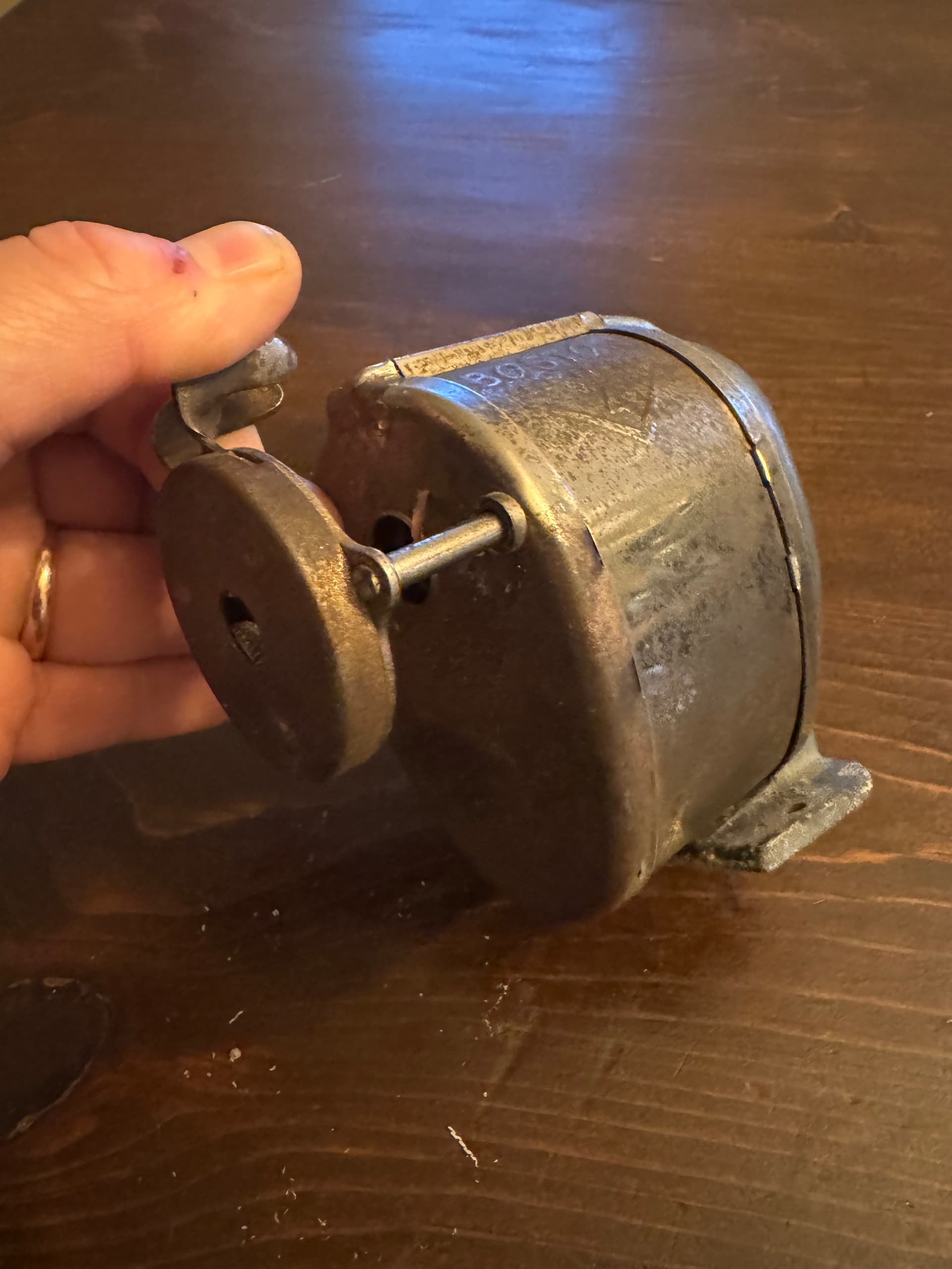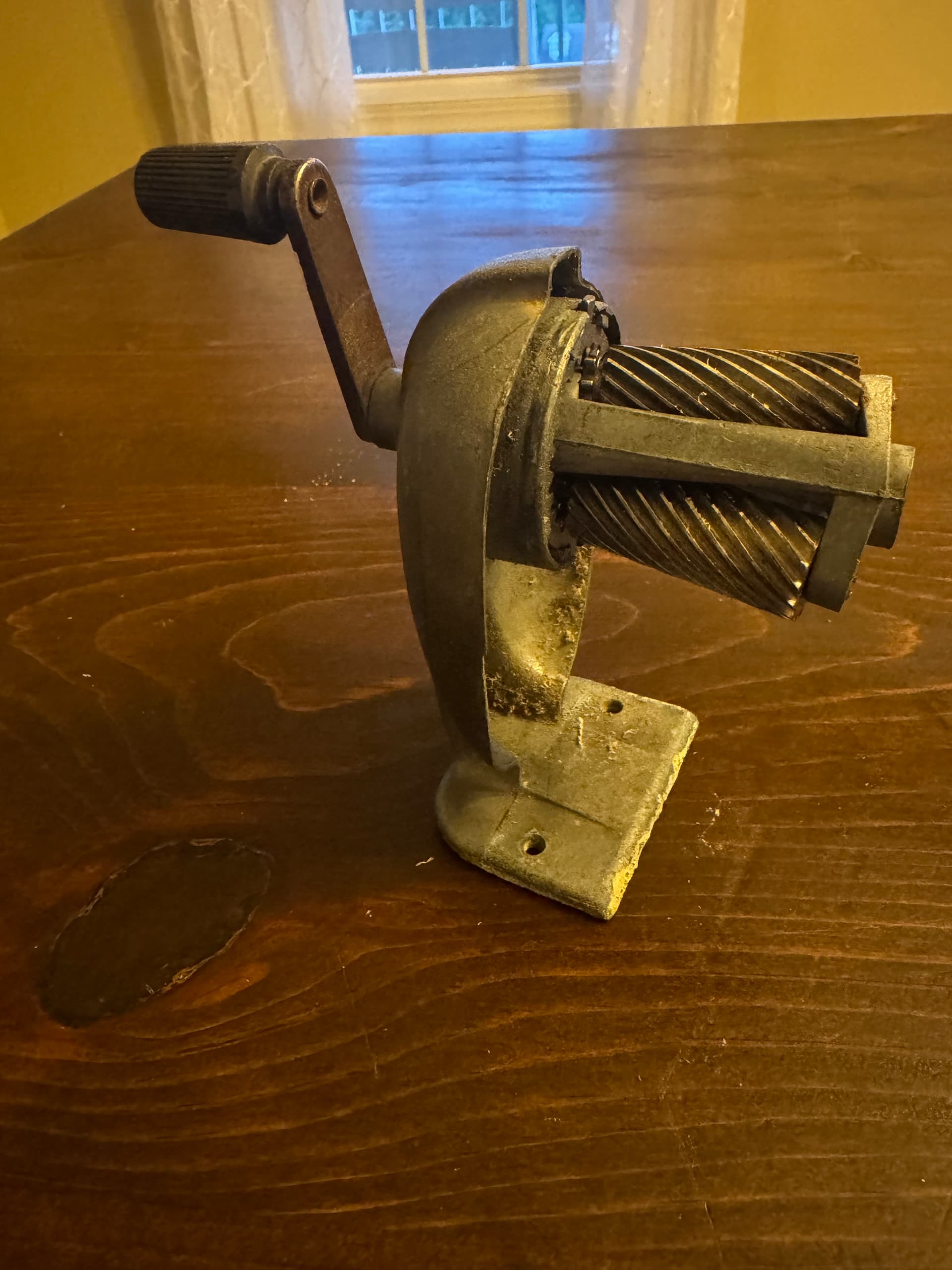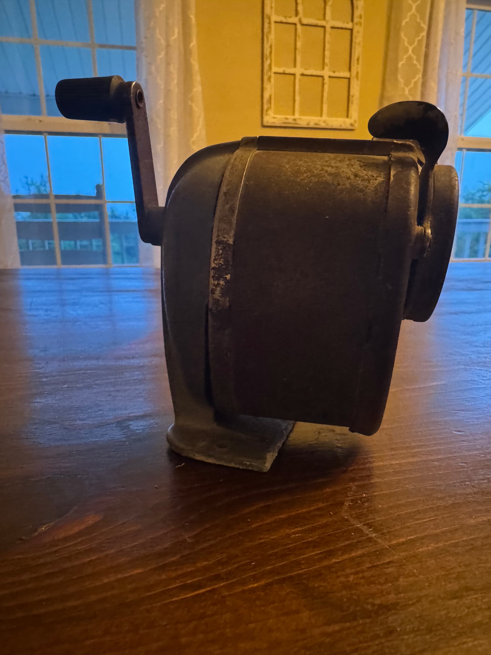 The round sharpeners are heavy. They are two step sharpeners - first step is to shave off the wood in the larger hole with a first blade and the second step is to point the lead in the smaller hole with a second blade.