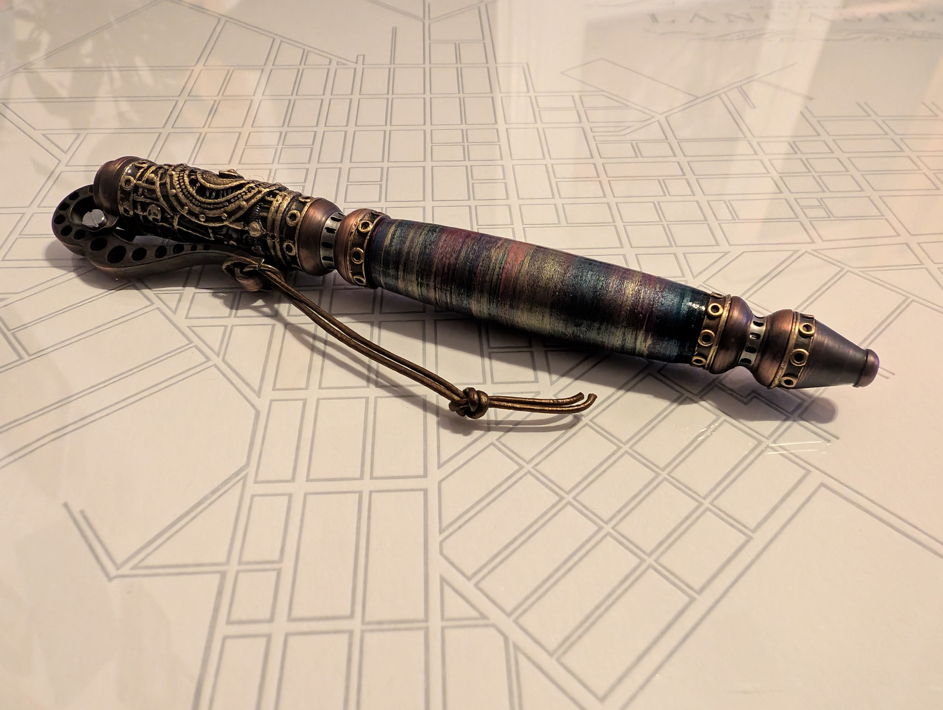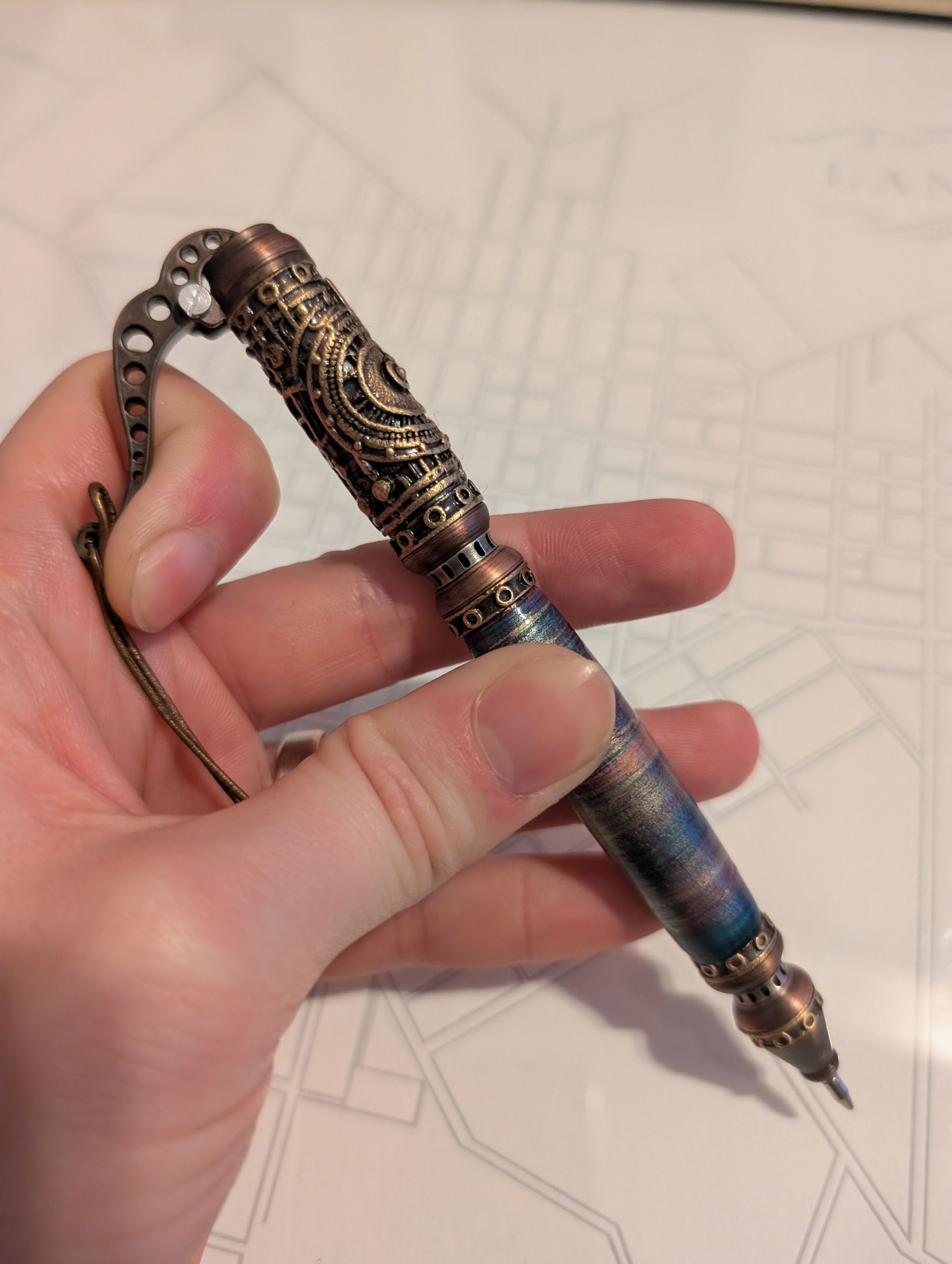 And my favorite for last, we have a kit pen that was done by a maker back across the pond in Michigan, USA called Lincoln’s Leathers. They have been leather workers for 10 years and eventually got into turning pen kits. The colorful grip is a bunch of layers of dyed leather that is glued together, turned on a lathe, and coated in acrylic. The hardware appears to be brass or bronze and has a nice mechanism. To deploy the pen, the pocket clip can be pulled like a lever on one of those old water pumps which pushes a plunger on the top that actuates the internal click mechanism. It is a heavier pen but I do not mind that. It came with a Parker insert.