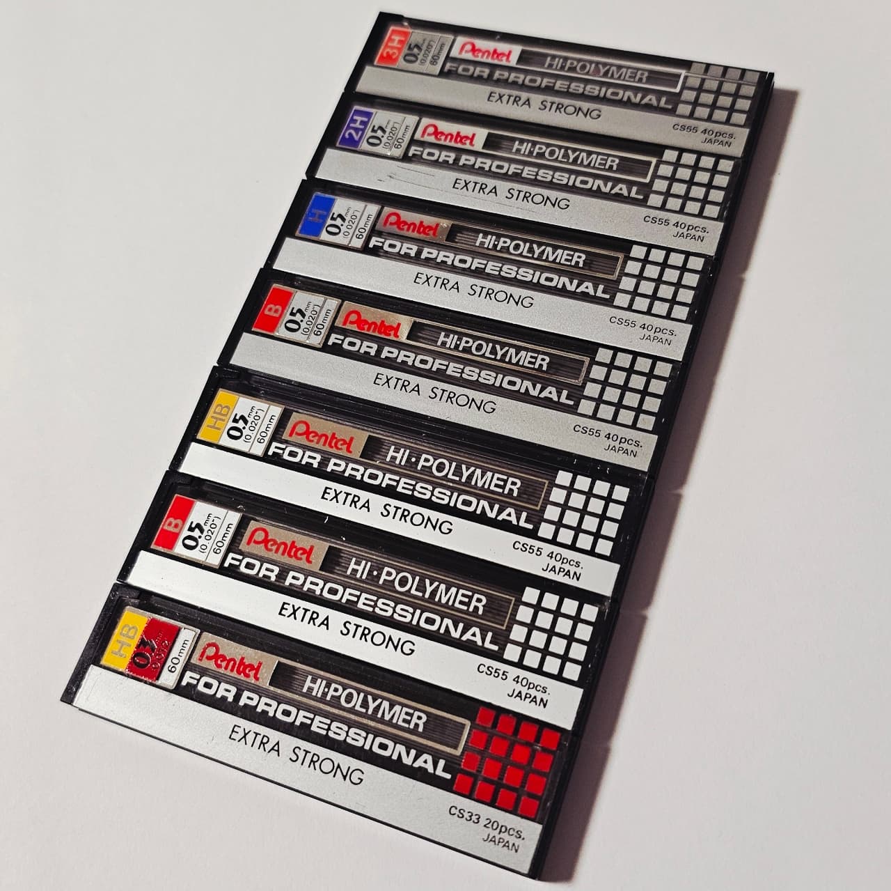 I’ve captured every ‘Hi-Polymer For Professional’ mechanical pencil lead I own in photos. Finding photo information for this product across the entire internet is extremely difficult, and this is likely the first time this information is being shared in web history. I hope you enjoy it.