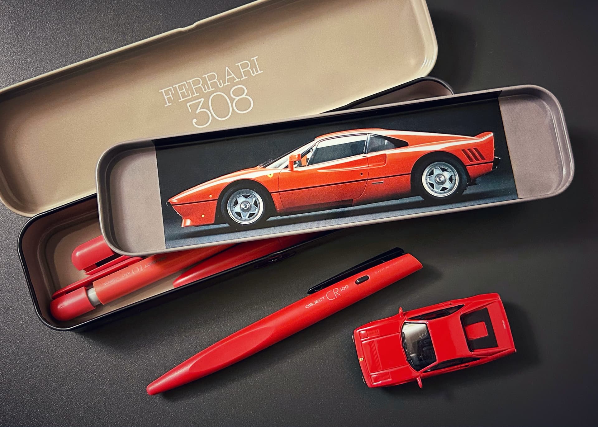 Along the way, I also picked up this metal tin Ferrari 308 pencil case made by… drumroll… TOMBOW! Now I use it to store most of my red Tombow Object pens and pencils. Case closed.