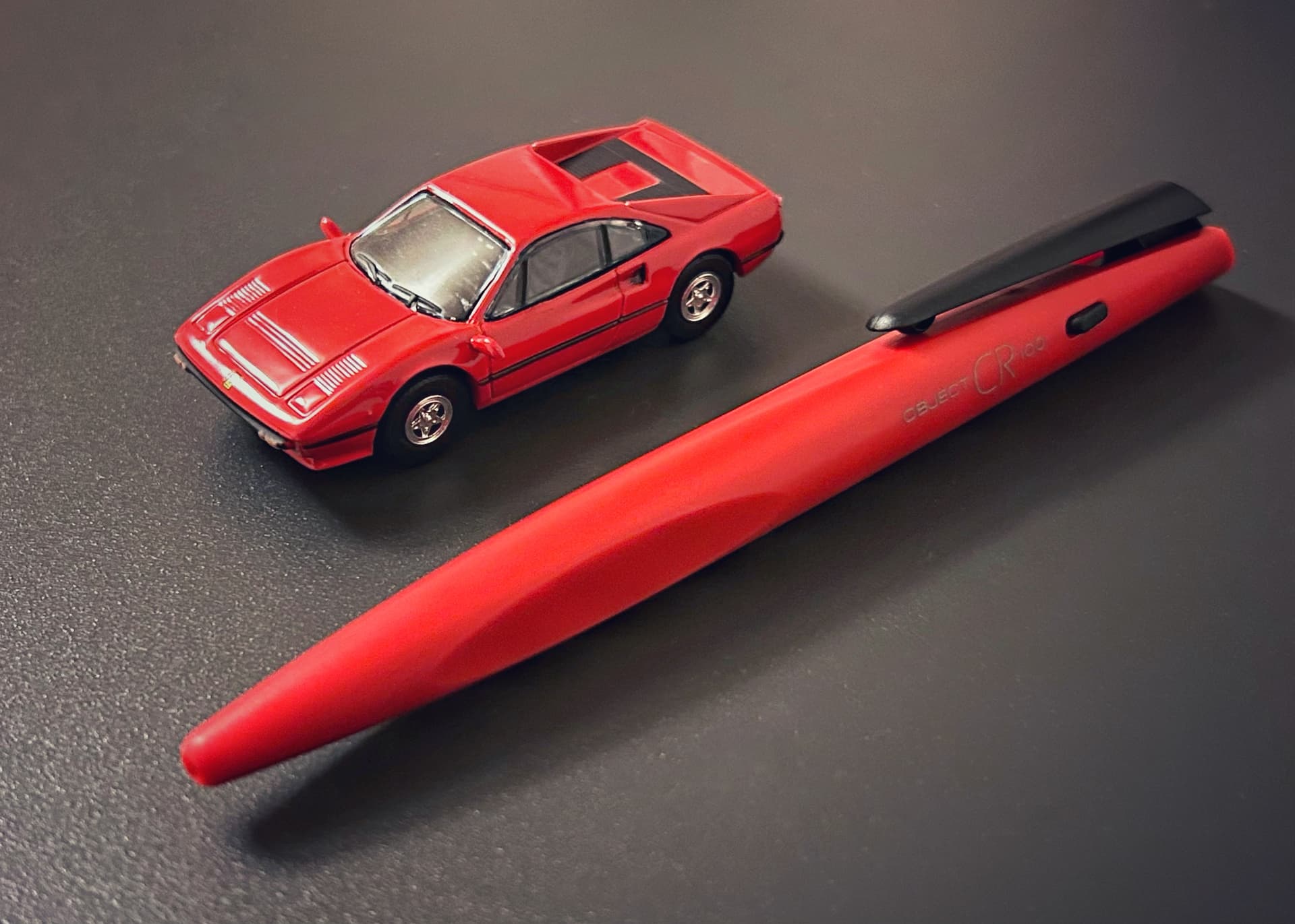 Now as for a matching pen, I thought the rather obscure Tombow Object CR 100 ballpoint was probably the closest I could get because of: 1. The red and black color scheme; 2. The sleek and sporty design; and 3. The long scalloped out grip that reminded me of the 308’s intakes.