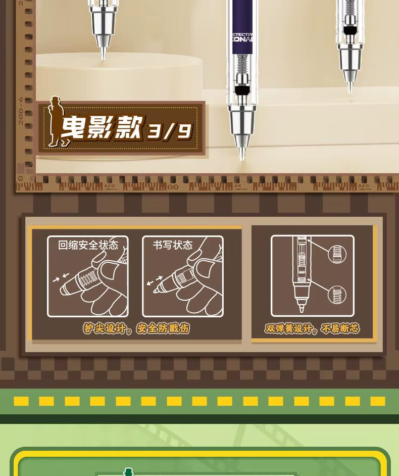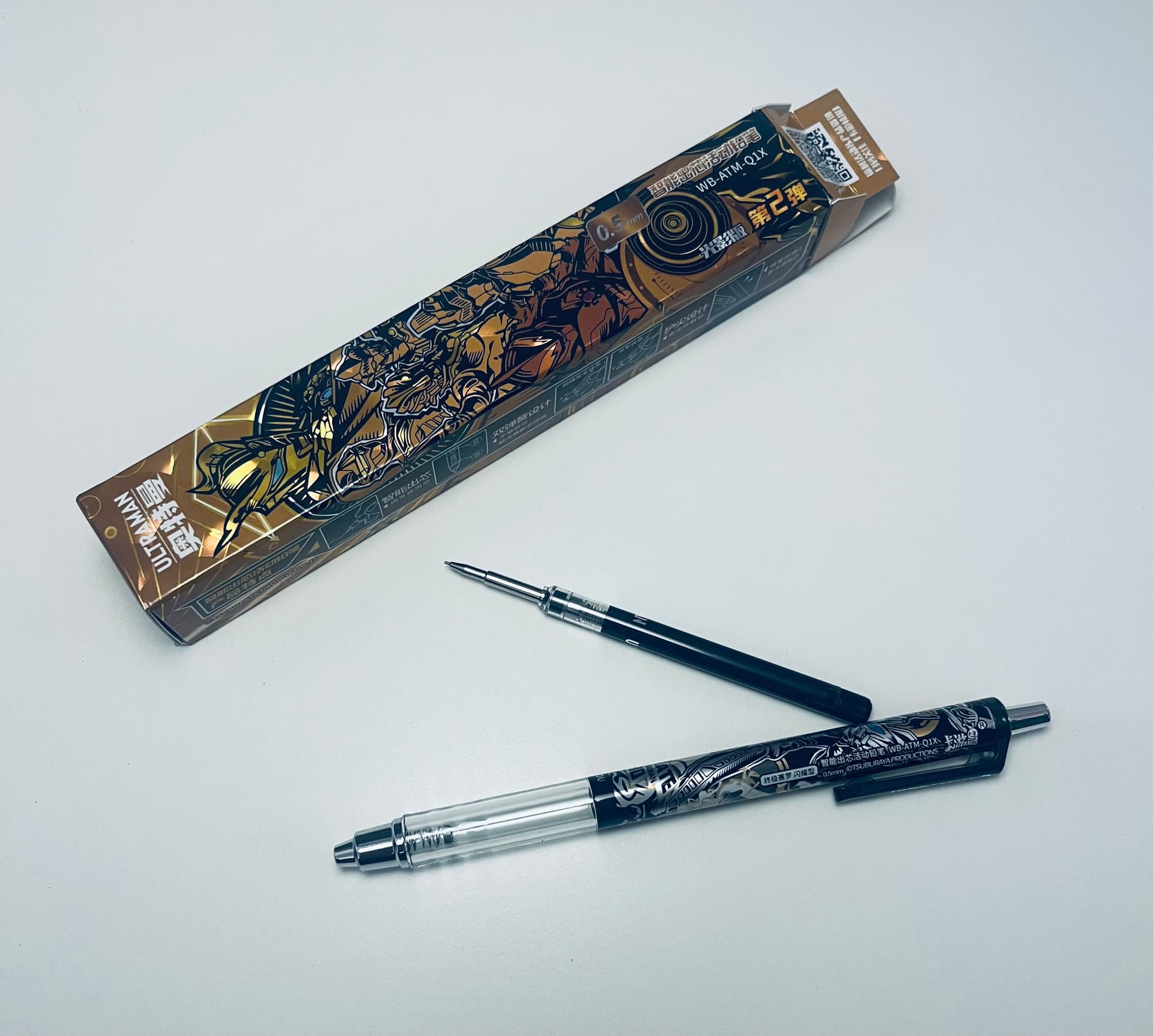 The version I am familiar with is the Ultraman branded edition. There are several colors and characters emblazoned on the pencils from this series, but I bought the one with the simplest black cartridge. It simply says ‘Ultraman’ in silver text on the cartridge. The Ultraman character theming is the real branding on these pencils. The ‘Kayou’ brand is not even on the box, but it does appear on the center of the pencil.