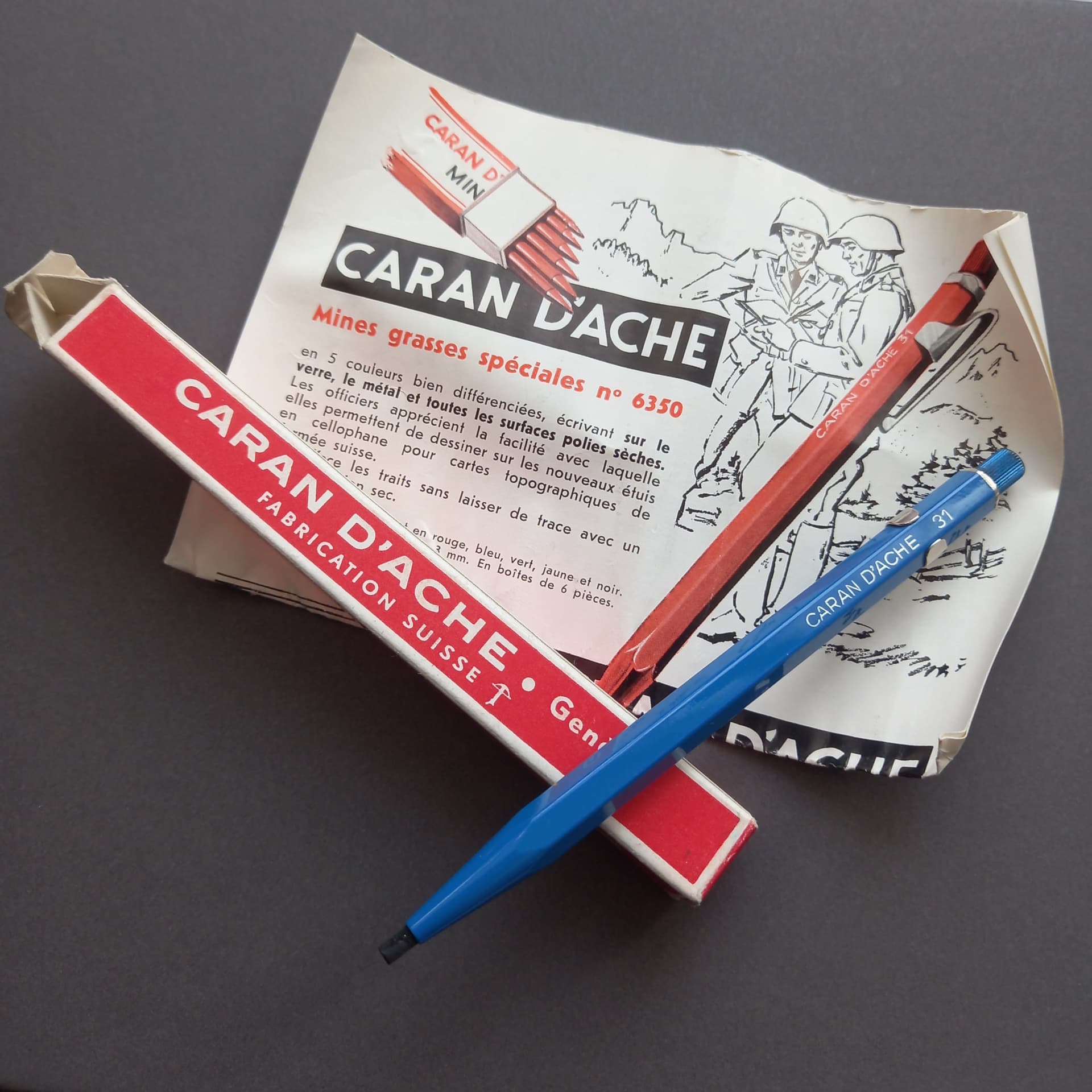 So here are a couple of nice minty examples of the Fixpencil 31 I just received - red and blue versions in their boxes with paperwork. I switched out the red lead for the 3mm Caran d’Ache and it fits and dials nicely, though needs support if sharpening it in a blade pointer, as the brass collar that holds the lead doesn’t have enough pinch to resist the bite of the blade. The grease leads they came with came in at 2.92mm but i guess 6 decades of shrinkage might account for that with non fired refills, maybe. Nice heavy pencils. The dial action has a feature where a plunger extends into the brass ferrule inside the barrel, to eject the lead, which made changjng them easier and that mechanism feels very well engineered. Happy to part with the blue one for the right price