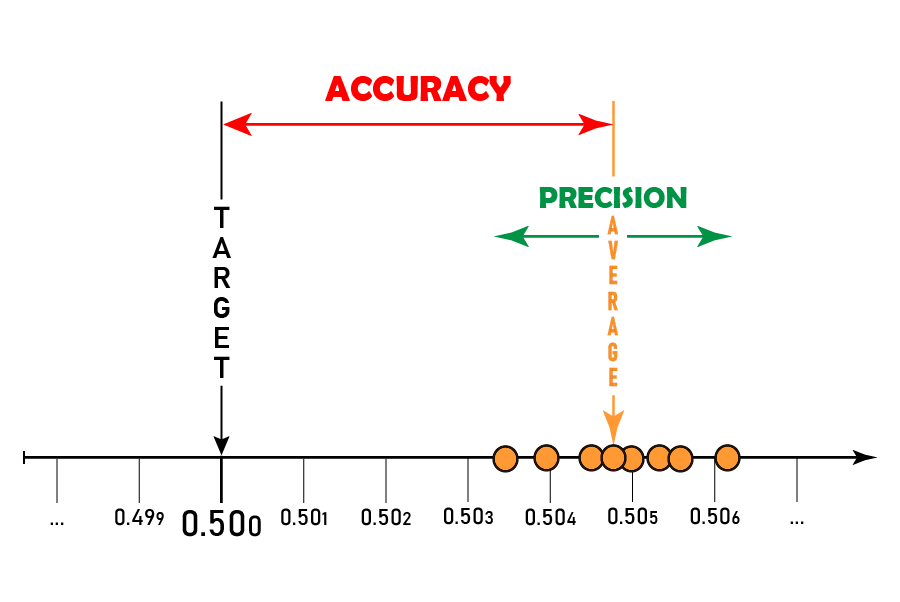 Precision, however, means something different. While accuracy describes how close a measurement is to the true or target value, precision describes how close repeated measurements are to one another.
