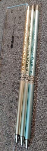 No frills, no fuss. A slender mechanical pencil with clean graphics and brass clutch.