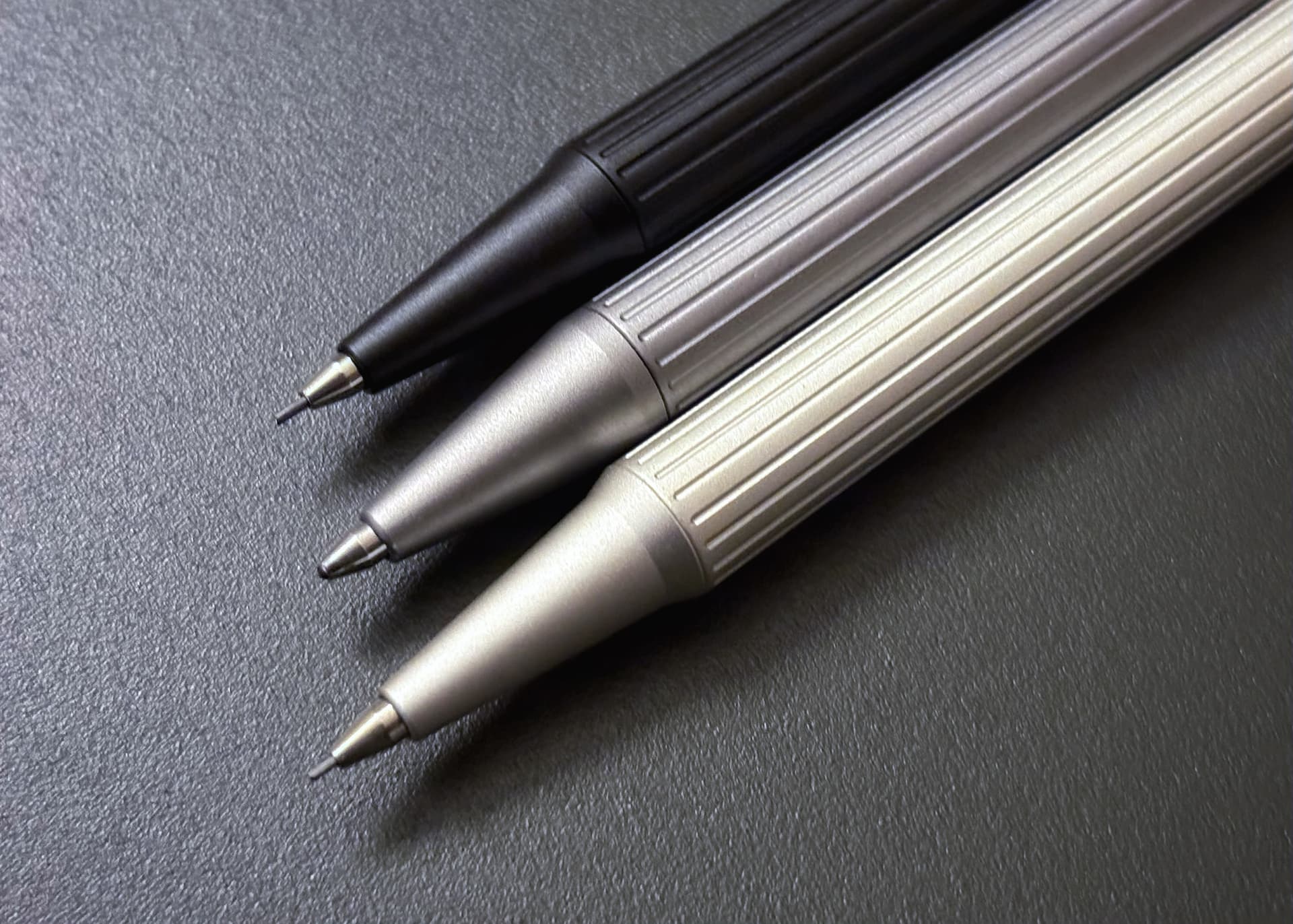 2 of Mr Rossi’s leadholder designs alongside the TA+d (TreAsia Design) Fiber pencil in 0.7mm. Because I’ve loaded almost all my 0.7 pencils with 2B, and I currently have H leads in both the Designer 8 and D568, the 2mm leadholders are actually producing sharper lines as I sketch compared to the 0.7s.