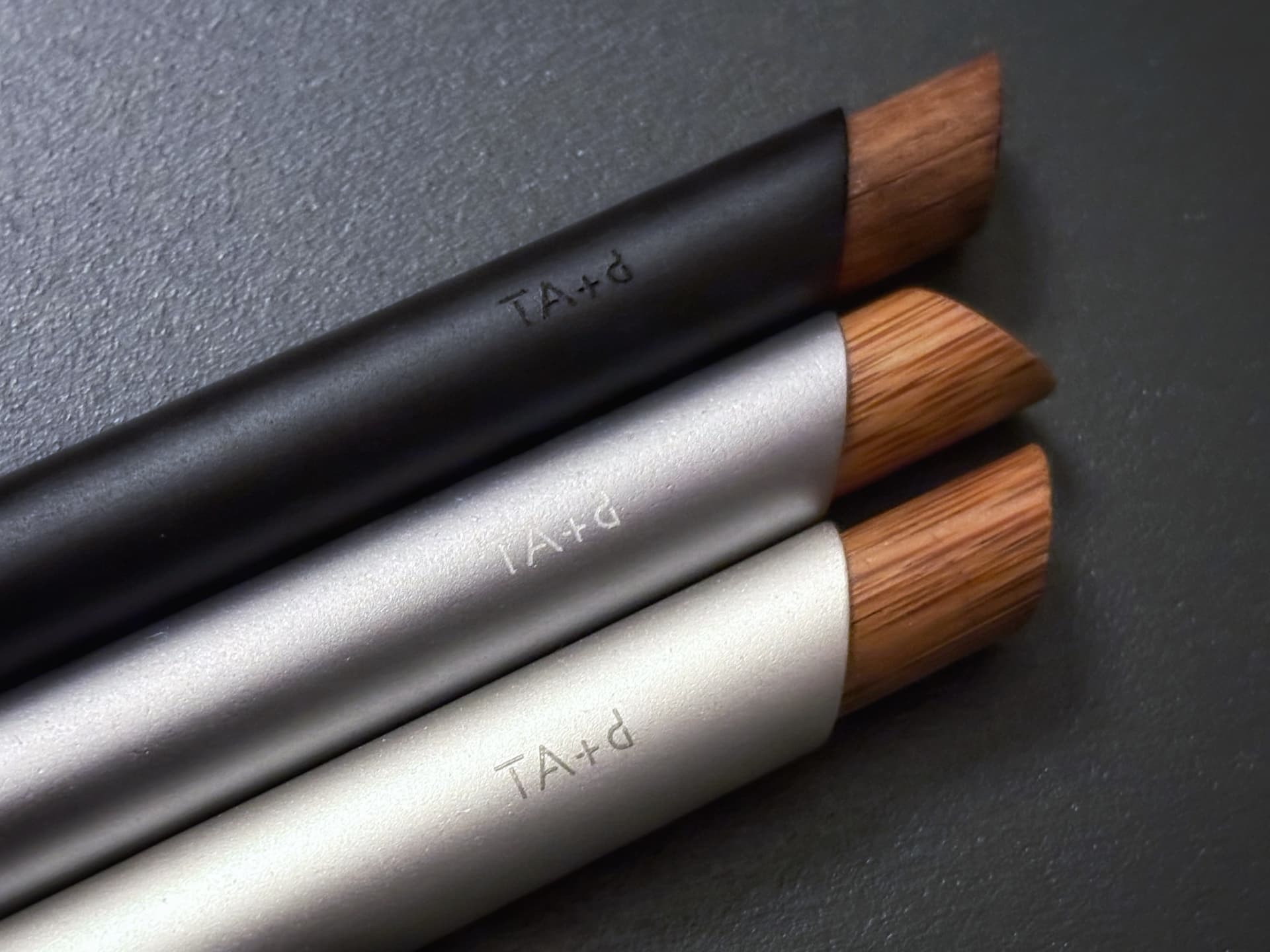 The Fiber… strangely grows on you but is also a flawed design. The obvious draw is the wood accent, be it bamboo as in the original TA+d spec, or ‘acacia wood’ as it is now spec’d by TaG. For the pencil, and I believe for the OLD ballpoint, the angled wood button makes you want to touch it and activate the knock. In TaG’s current site, the BP is now a twist mechanism (far as I can tell) and the wooden bit is squared off… purely decorative. Similar case on the FP, or should I say, worse – because the end is angled and obscures even more of the non-functional wooden bit. So for me, the visual and tactile charm only remains in the MP.