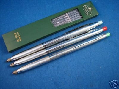 The beautiful chromed design is reminiscent of the Pentel PS1042/5 and also the matching 20μ silver plated ballpoint. Mechanically it is similar to the fabled Uchida Drawing Sharp series.