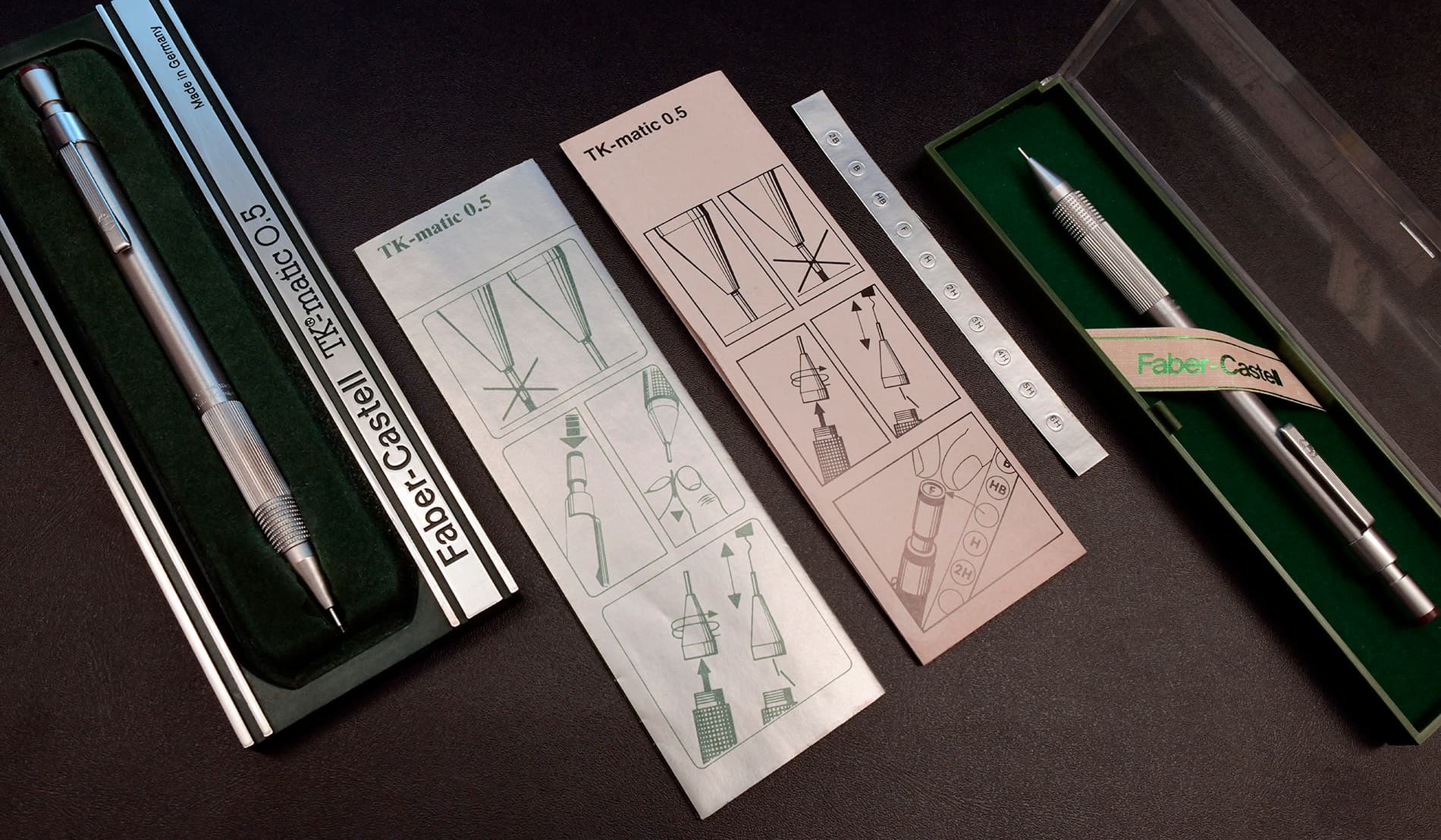 The TK-matic examples on hand fortunately retain their original boxes and manuals. A notable difference is that the manual accompanying the version with the lead grade indicator sticker includes printed diagrams for replacing the sticker.