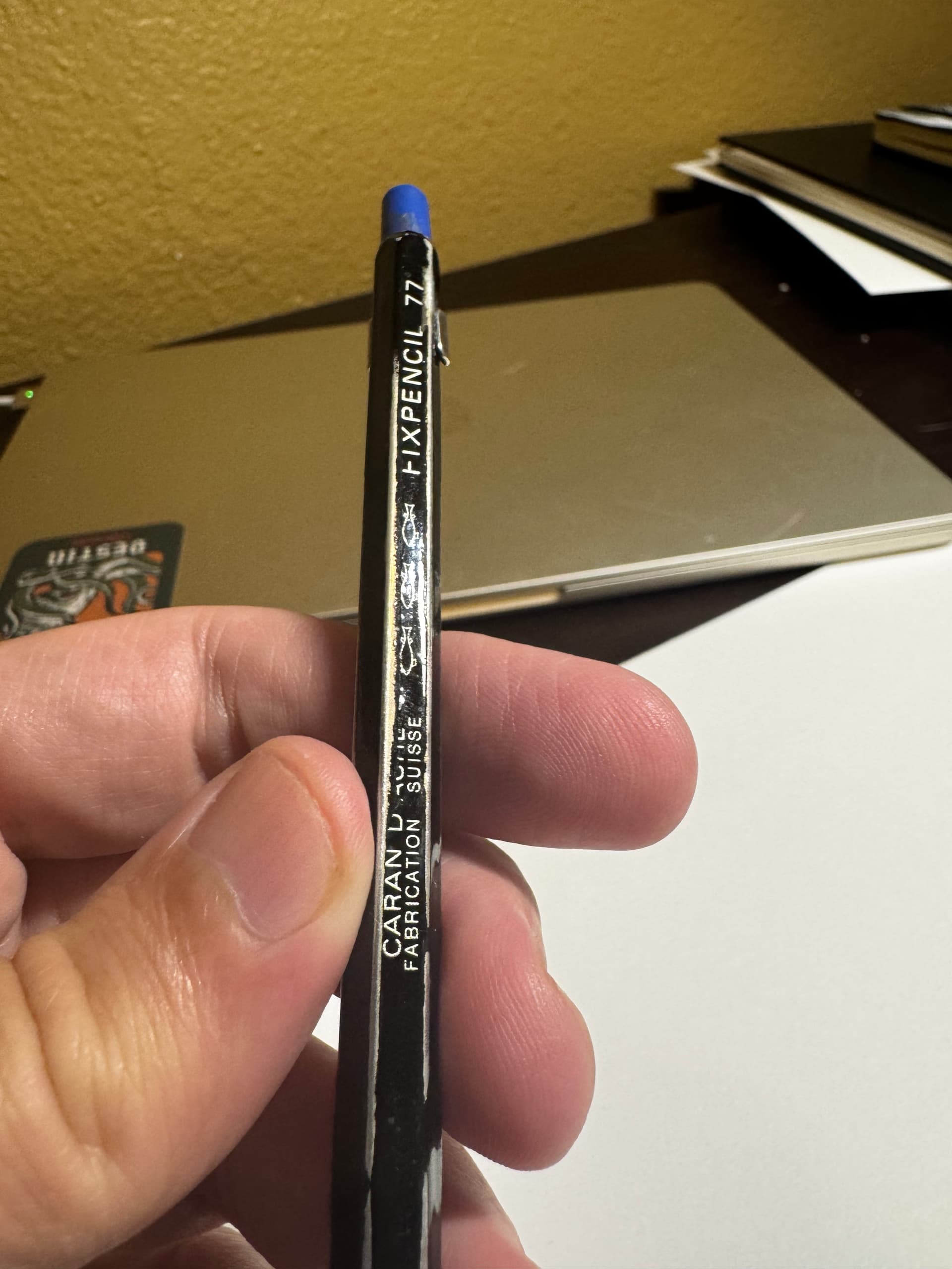 Hi I’m offering a Caran D’Ache Fixpencil 77 for sale. It has some paint missing as seen in the pics, but works amazingly. I was considering $75, shipping included, but I’m more than willing to work something out, just DM me