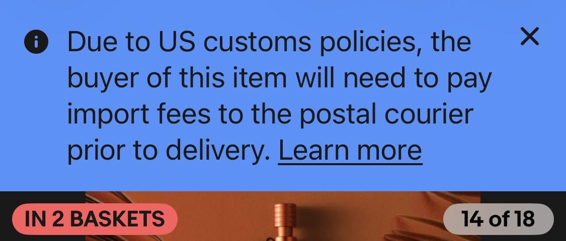 It’s the ‘import fees’ (tariffs) that worries me about buying items from sellers outside of the United States.