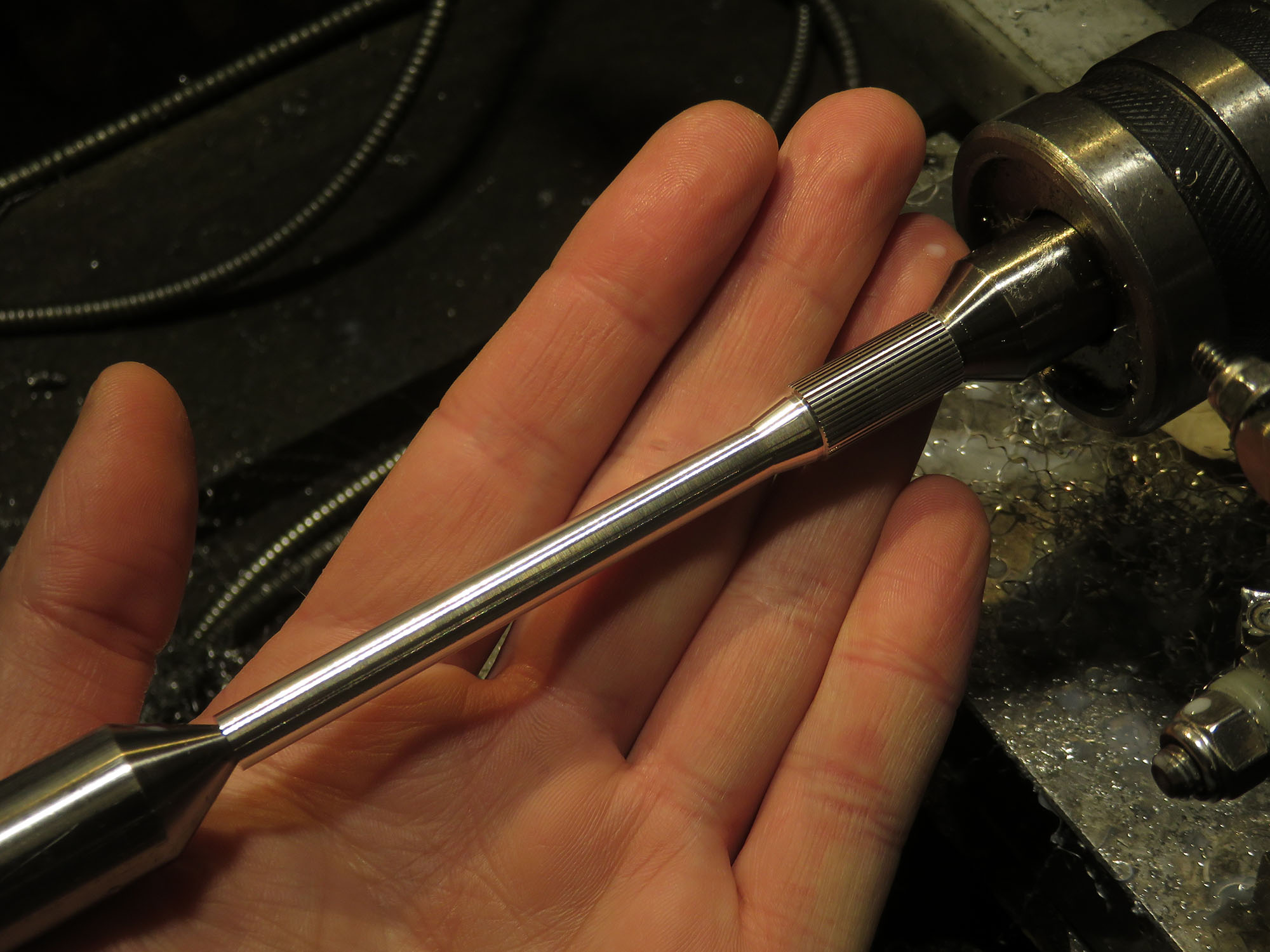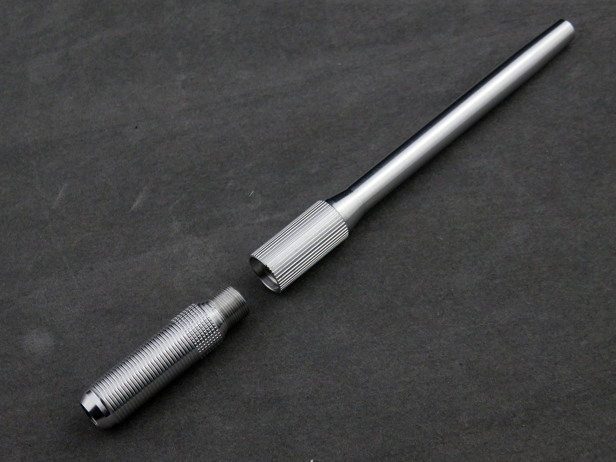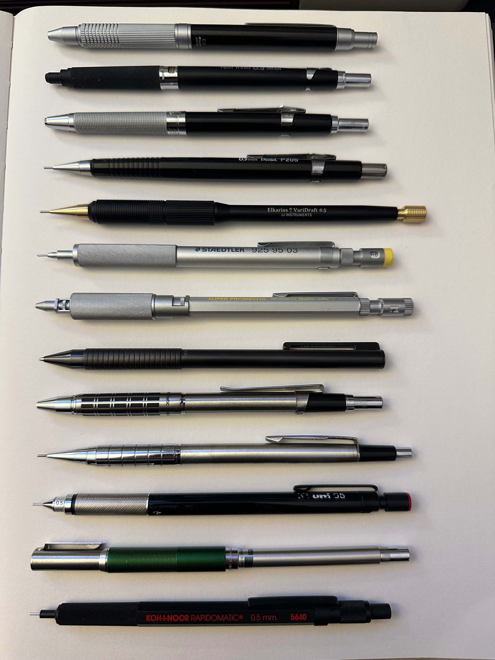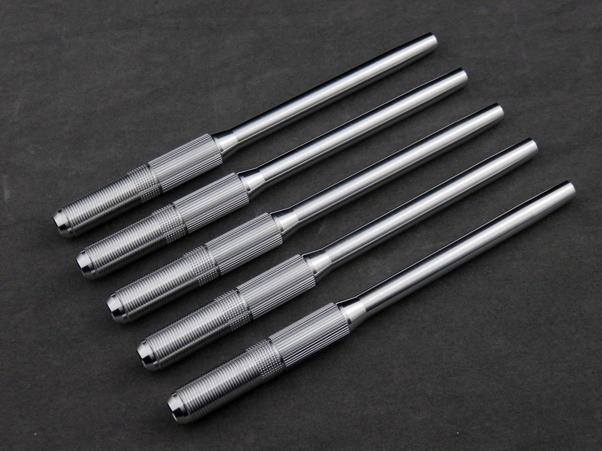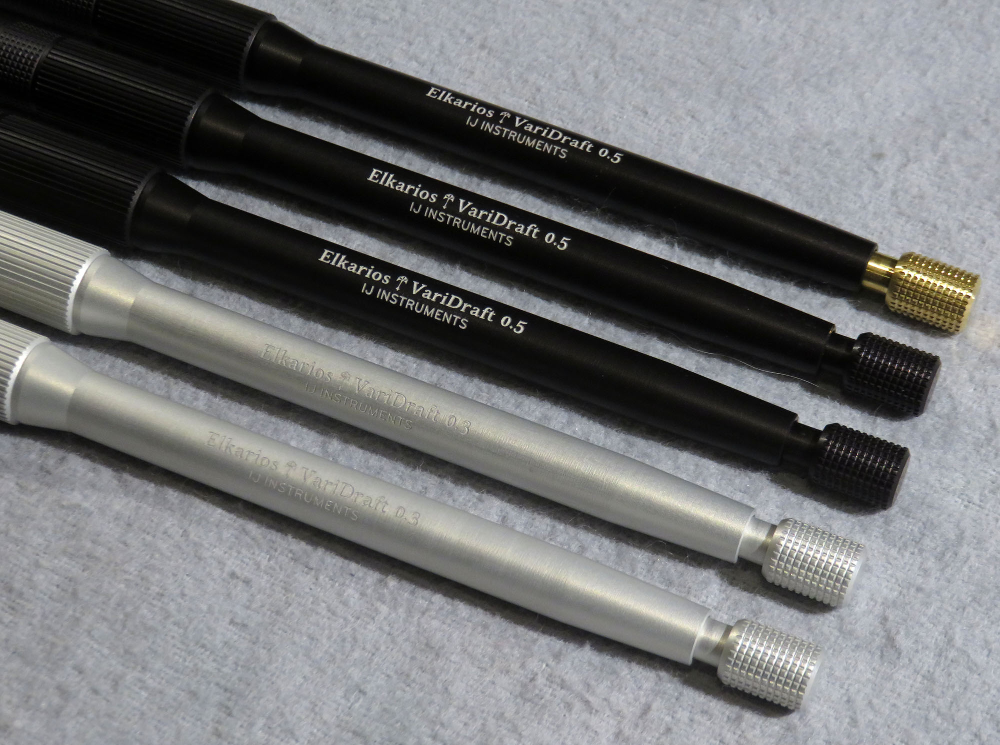 At this point it was still just an idea that I had, but I had known IJ Instruments to produce custom and finely machined mechanical pencil bodies for Pentel mechanisms, around which I had designed my own model. An e-mail turned into a lengthy chain as we finalized the design for production - 5 pieces, three 0.5mm models in black and two 0.3mm models in silver, machined from aluminium and anodized (a process which Lindsay is incorporating for the first time for this project!).