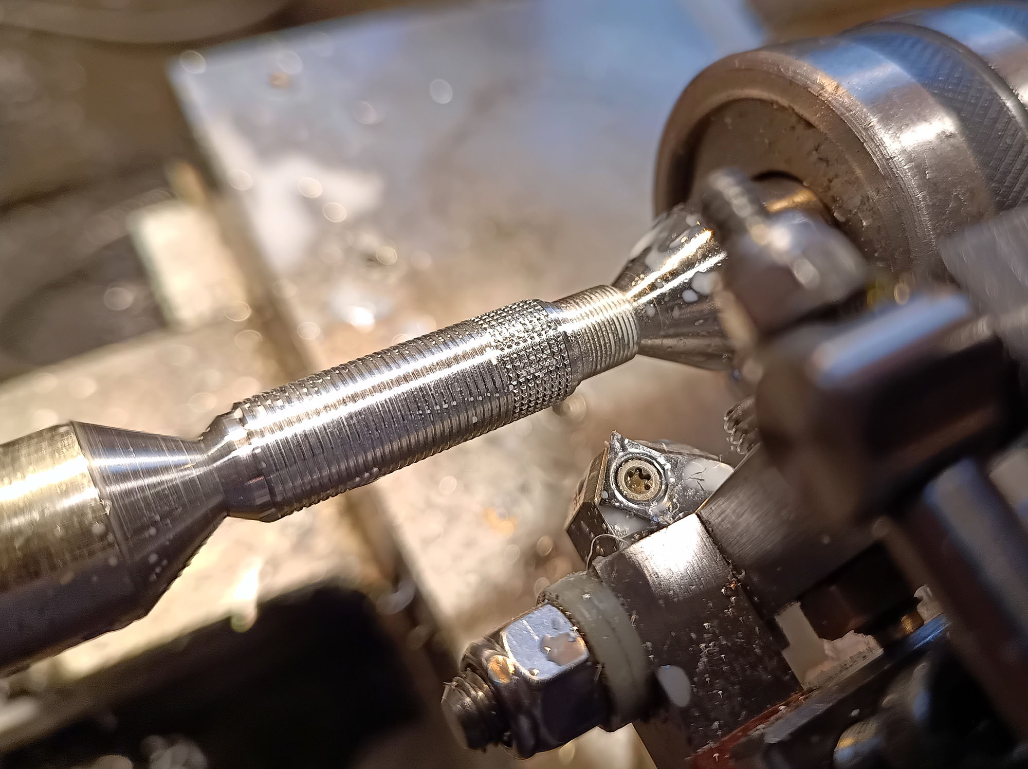 I had considered other materials, including steel, brass, and titanium, but decided on Aluminium mostly due to the finished weight and finish. During early stages, steel and brass were immediately disqualified due to their projected weights - 43 and 46 grams respectively! - and though titanium was also good, the machining complexity of the design unfortunately precluded it.
