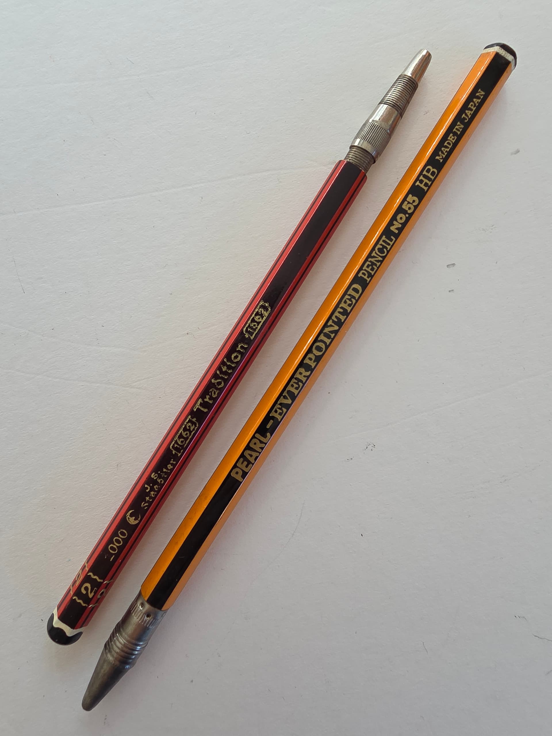 In response to the post by majkycz_y (lineup for weekend #48), I was reminded by the very nice 48002 (and the Tradition woodcased) of the oddity of the JS numbering system for that series (not a unique"problem"). It was/is the only 5 digit system I know for leadholders. That made me think of the previous series, the 10xx’s, and so I assembled them in numerical order and it had its oddities, as well. There are two very different 1002s, three versions of 1013 (two plastic!), etc. Then there is the red and black 1000, a clear take on the woodcased “Tradition” series. When was it? Style and operation indicate old ( their first per the number?) …only info I can find is in ads I created, not any real help there…ha. Then there is the similarity to another oddity, the made in Japan wood-barreled PEARL. Again, the only info I could find is self-referential.. Thoughts..?