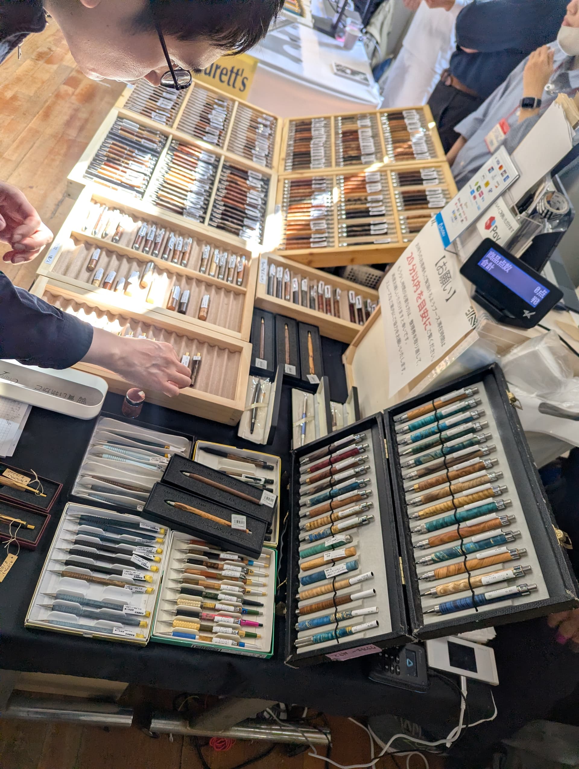 The Tsuzuri-ya booth. They make some stunning pieces out of wood, brass and ebonite. Sadly no mechanical pencils, but their pens are cool.