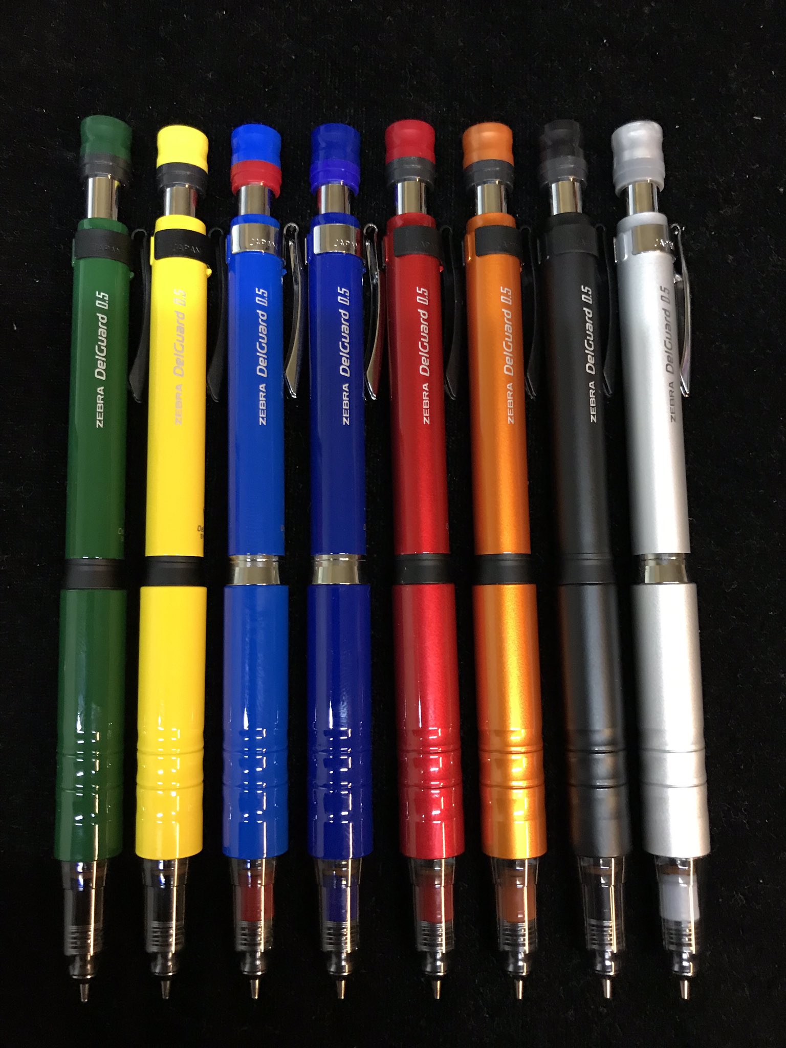 Also the design — none of the kuru togas so far really caught my attention, even though I quite like the fully transparent (or the yellow) Advance model and it feels strangely compact, like the Zebras. The Delguard LX especially is a very nice pencil. The other experiments with protruding gigantic erasers and that sort of thing doesn’t interest me as much. The Delguard ER has a nice chunkiness to it but alas it is too light (and somehow not having a clip bothers me a bit i don’t know why)
