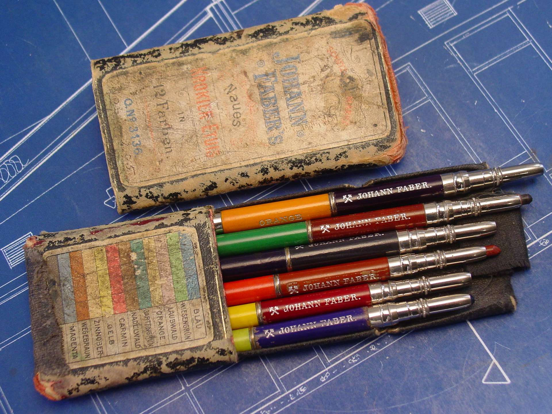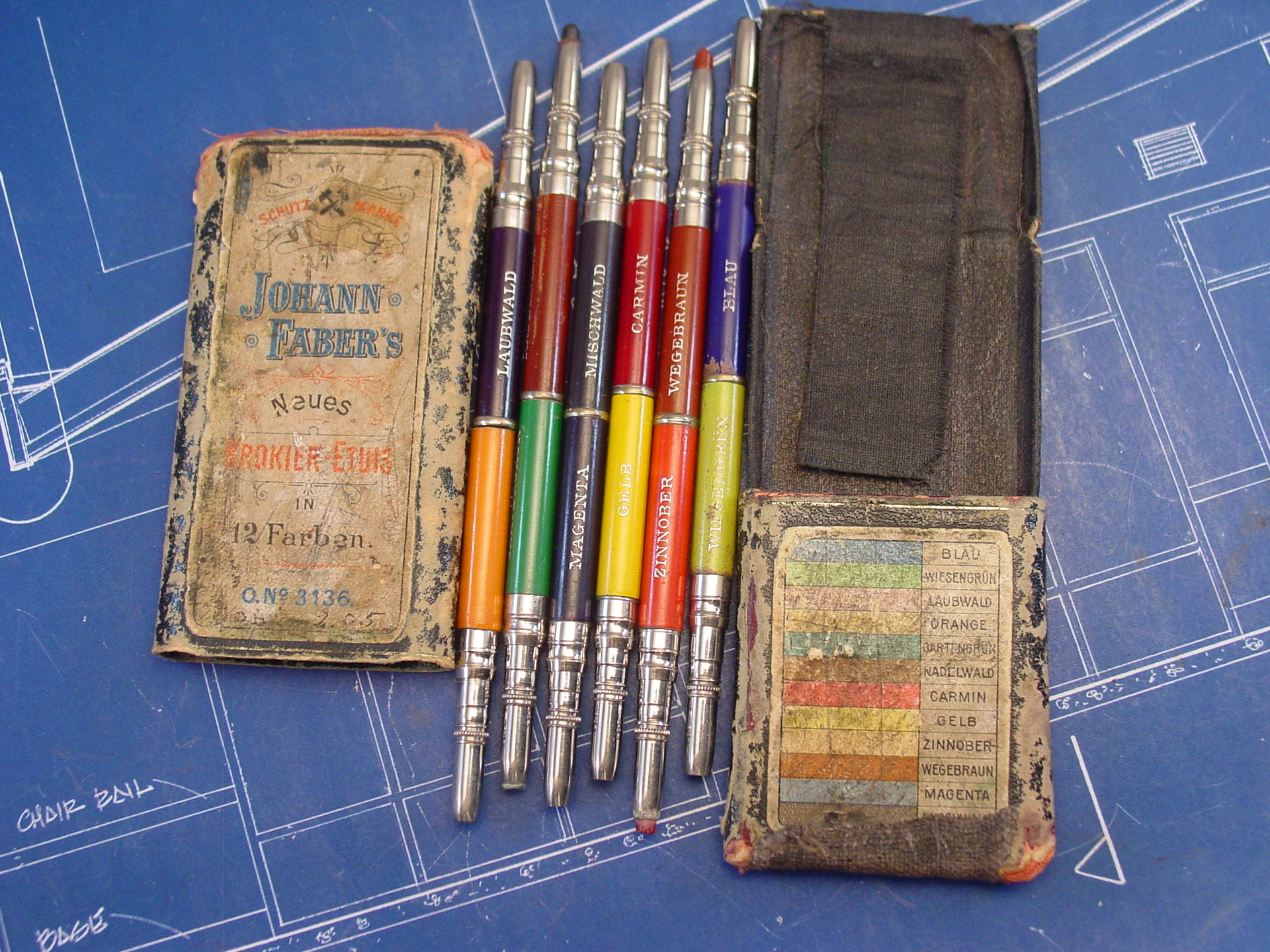 [Notice as well that, of the 24 Renta Zeichestifte, 8 have a slightly different form factor, so they might belong to a different set, or era; colour (wooden) pencils typically came in sets of 6, 12, 24 and 36 in Italy — progressively adding more shades or exotic hues as the number of items added up — and I would not be surprised if more of these Renta’s, with other ID numbers, cropped up; still 24 is a good “highest figure“, so it might as well be it.]