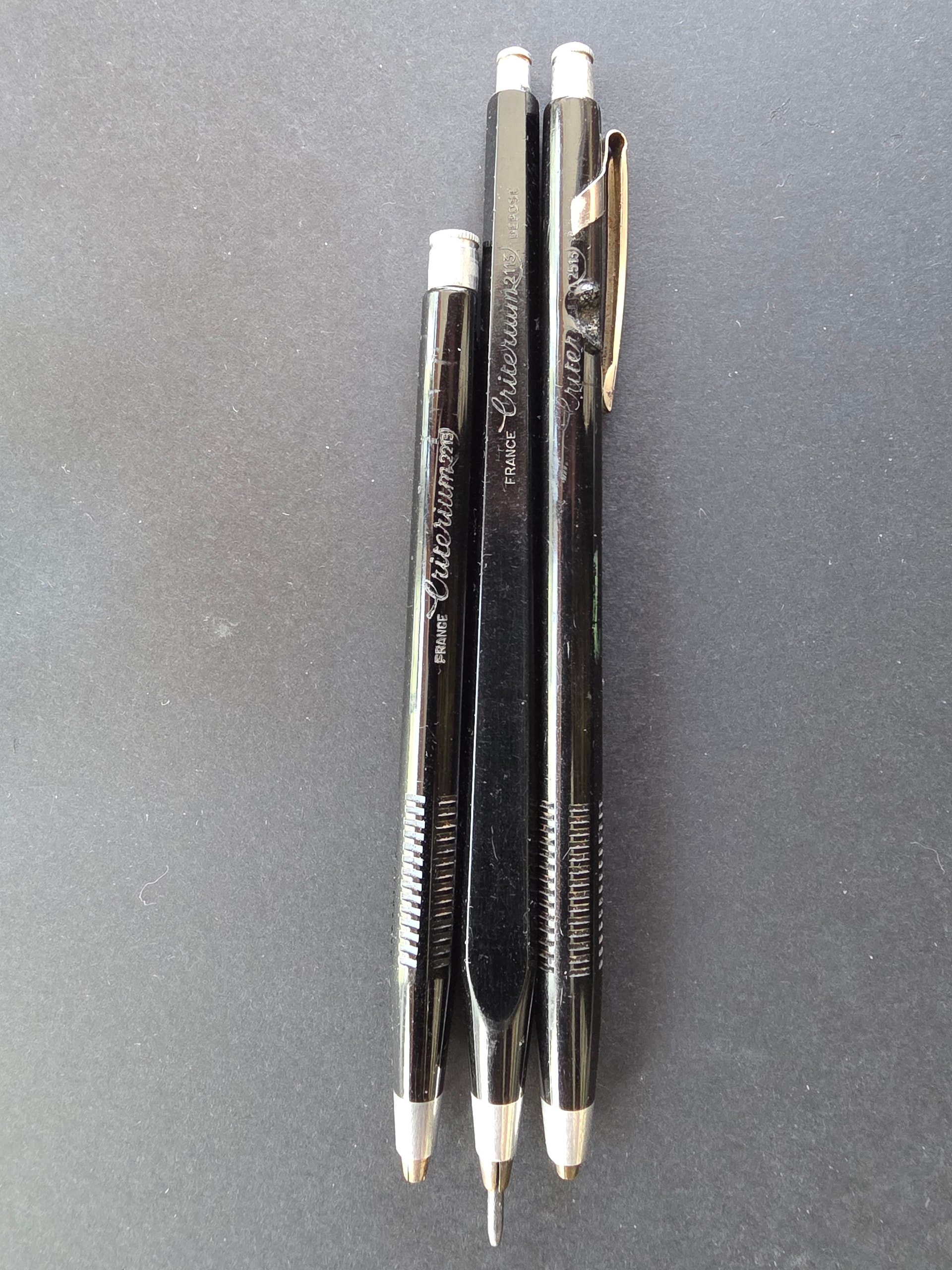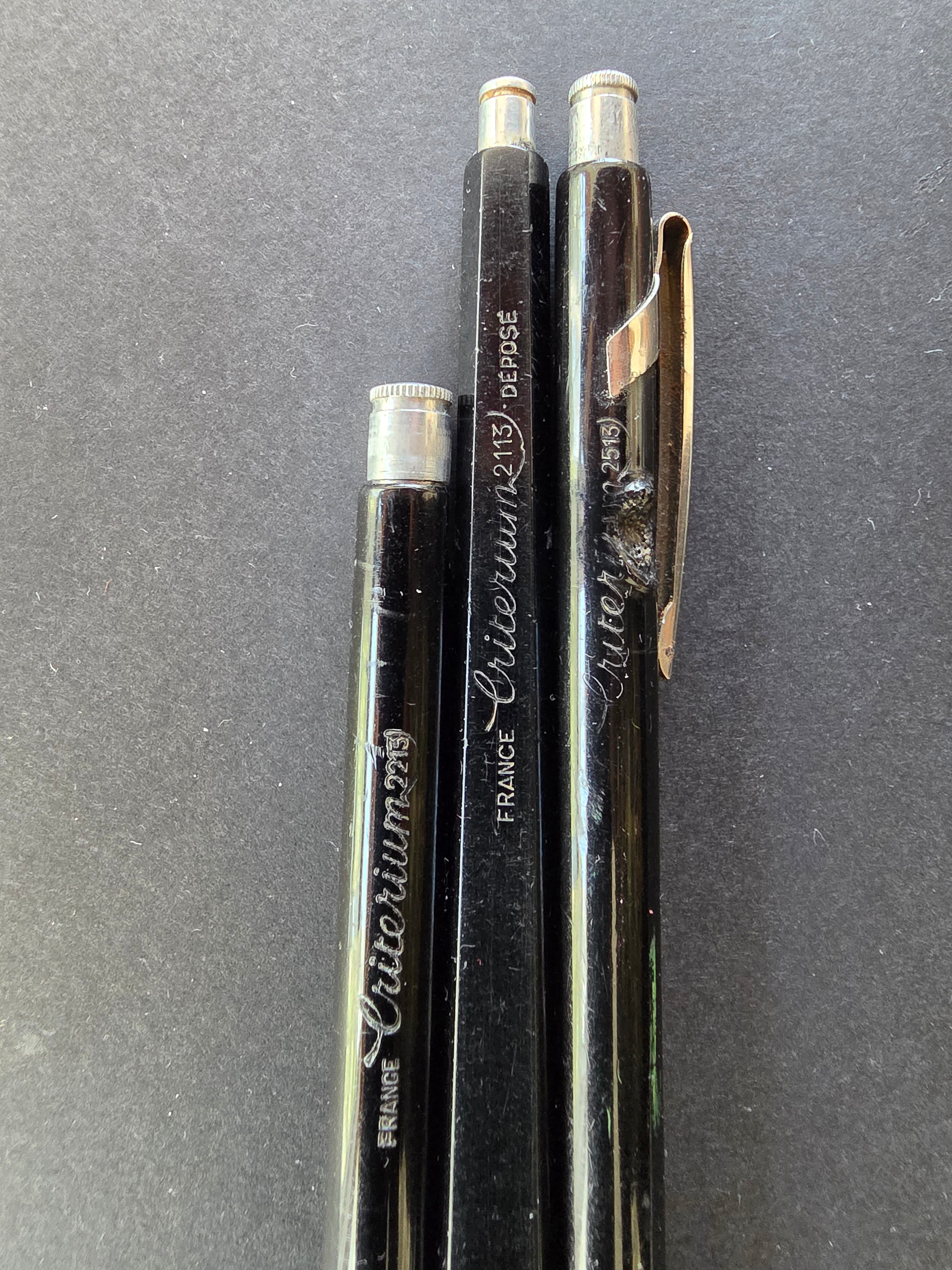- Apart from the extra-short Criterium 2313, possibly my favourite tiny 2.00mm holder, is there a full-metal analogue? I know that Conté-Gilbert-Blanzy-Poure had in its lineup some interesting pairs of short plastic-barrel and aluminium-barrel pieces, such as e.g. 2401 and 2411 (1.18mm), 2403 and 2413 (2.00mm), and so on, but I wonder whether they ever made any extra-short Criterium 2303 (???) piece in metal.