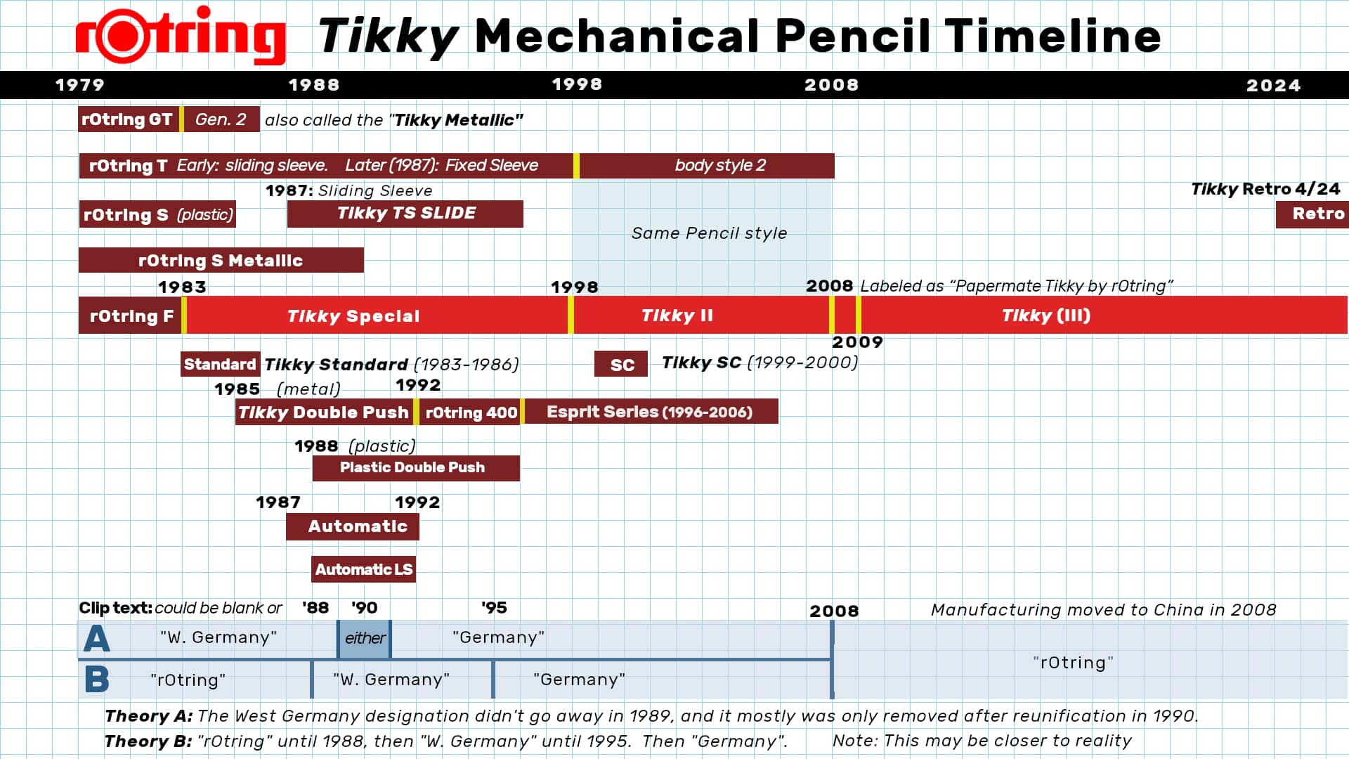 The Double Push, rOtring 400 and Esprit and all in the middle of the graphic above - to give you an idea when they were sold.