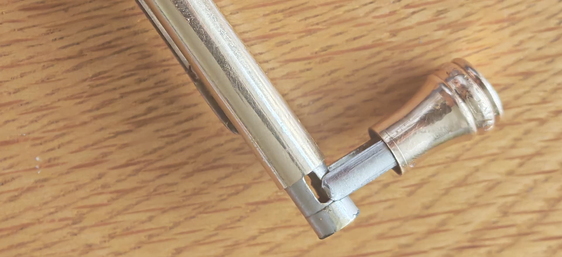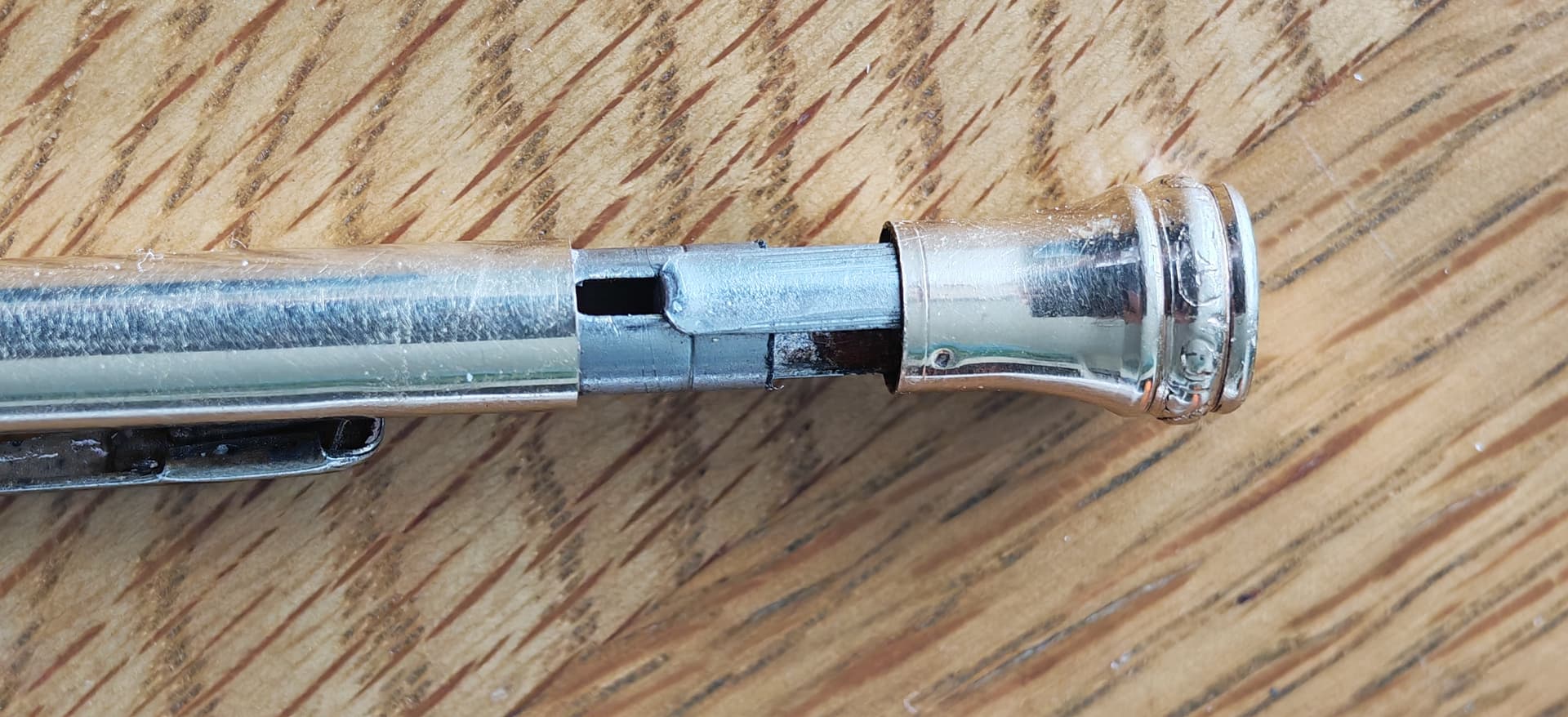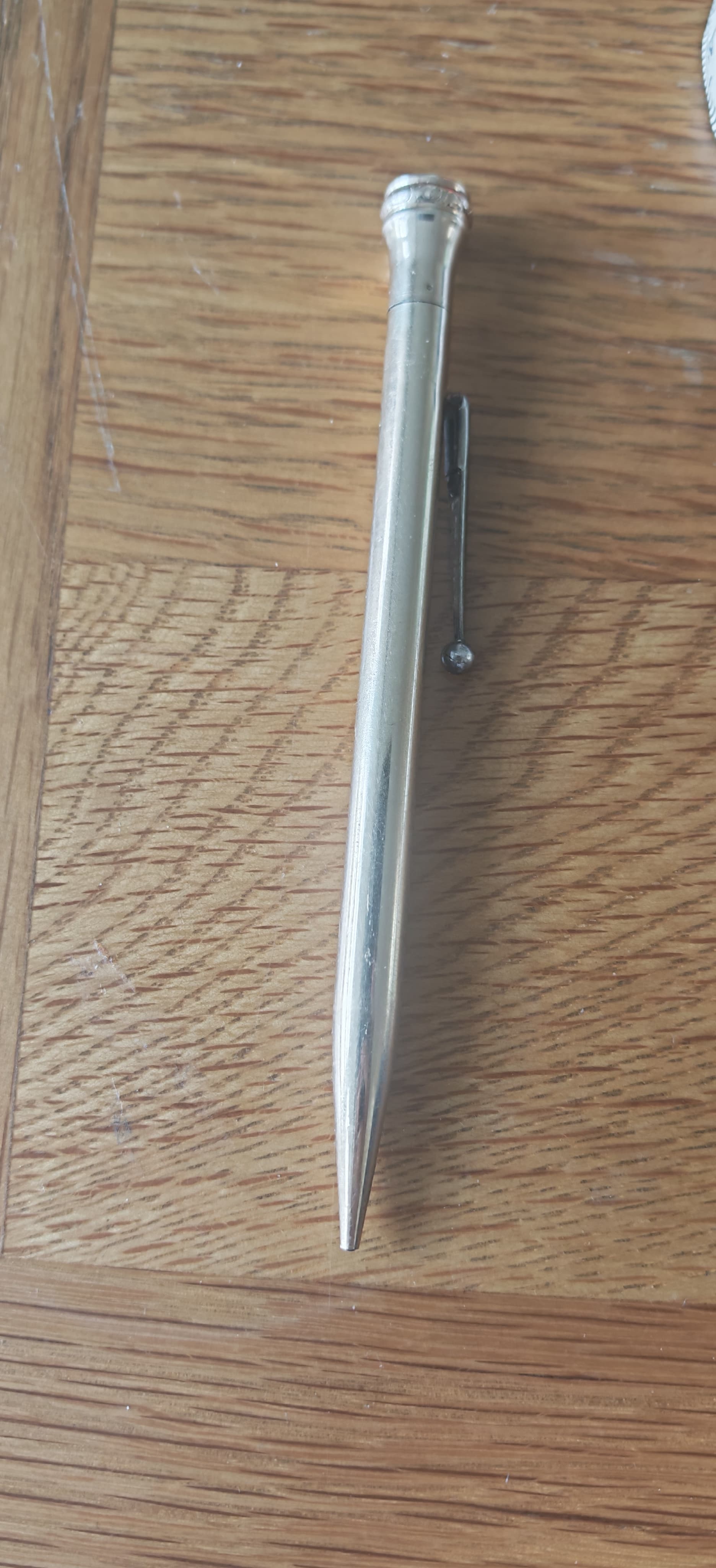 I bought a box of goodies at auction and in it was this flip top, twist mechanism pencil