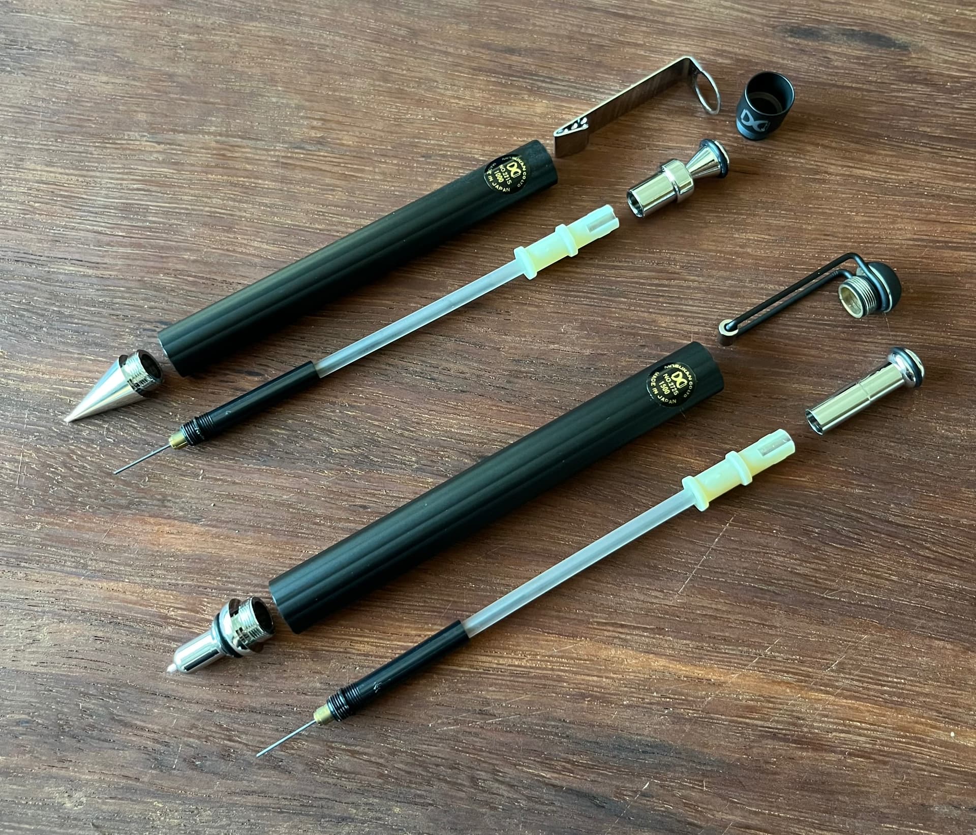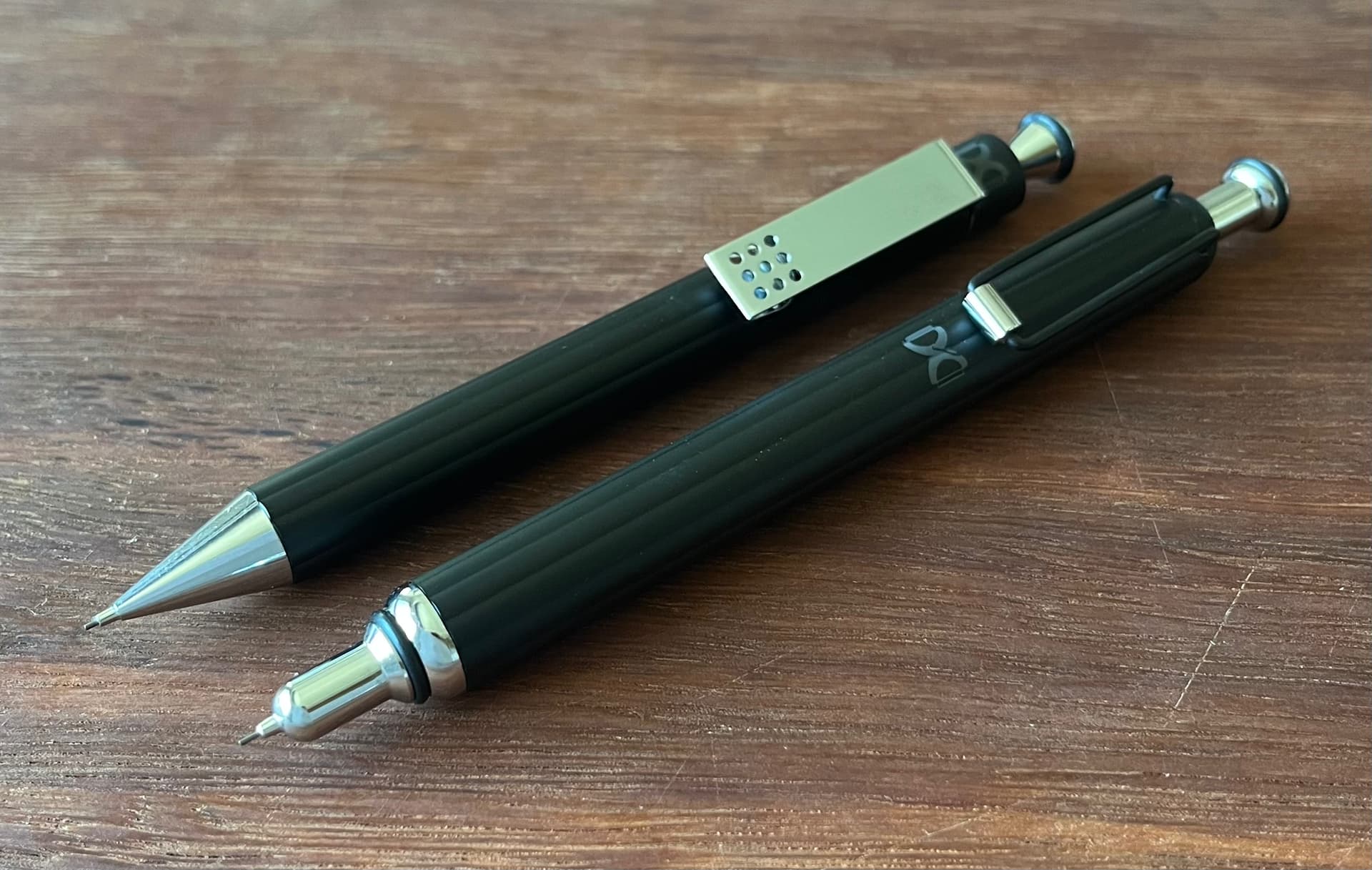 Prices of 1000 and 1500 put them in the ‘design you pay for’ class of pencils, but their construction is nothing to write home about. The fluted hard rubber barrels don’t carry any luxury ethos.