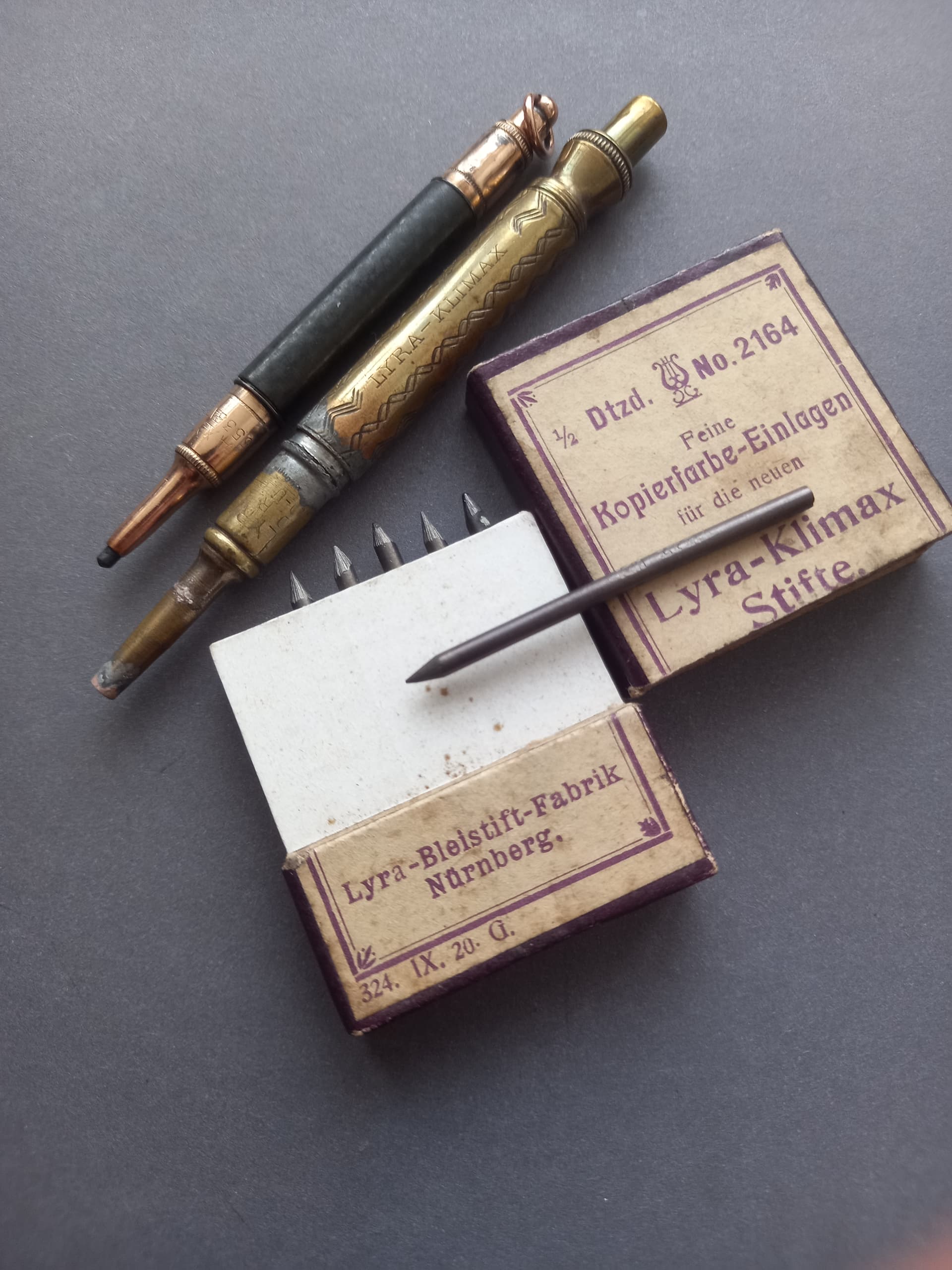 The first one-handed mechanical pencil came from the Lyra pencil works in Nuremberg. It was produced in quantities that were almost unimaginable at the time and sold at home and abroad after the patent for it had already been acquired. Branded articles in today’s sense did not yet exist at that time, but the Klimax had its name, its stamp and it also left a special mark on its time. At that time, it was not only produced for Germany, but also for Austria-Hungary and many other countries.