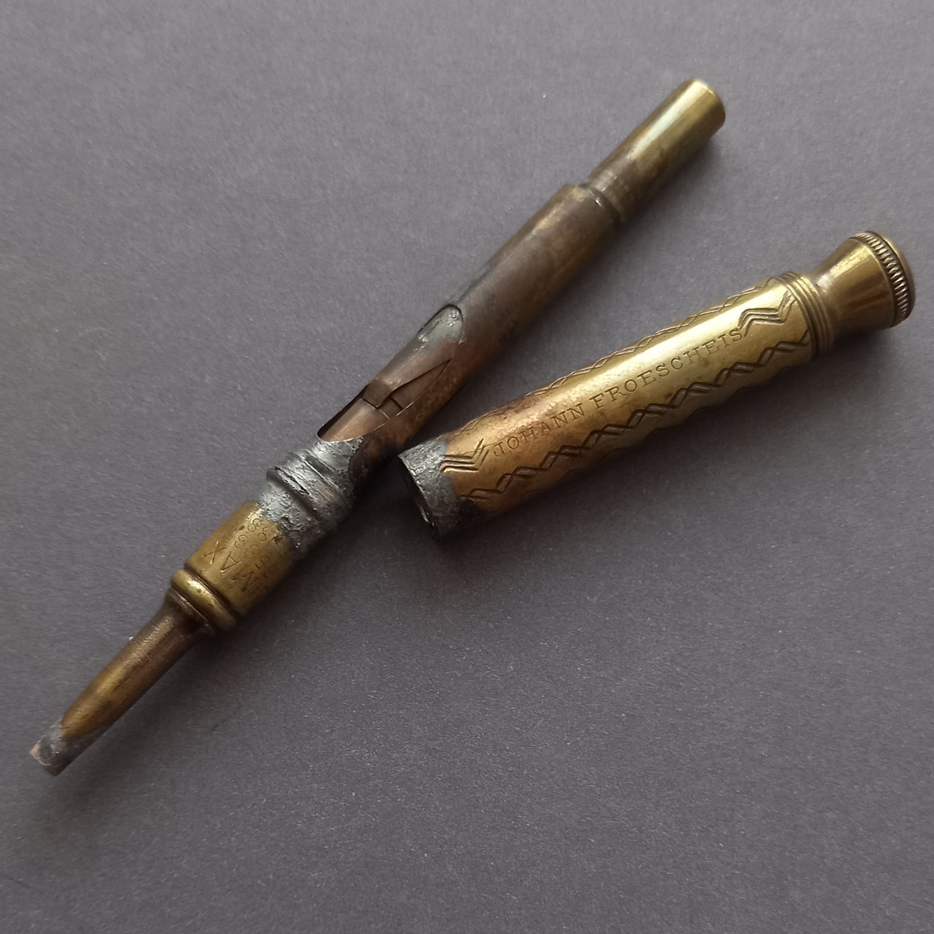 Here’s a couple of older Klimax models I picked up. The busted one I bought specifically to disassemble to see how it worked, as I love how innovative and excellent the operation is. The inner copper leaves cut from two outer layers of the inner barrels allow you to see some of how precisely the more ‘sticky’ copper is use to pull and push the tip out. It’s really quite ingenious how the ratchet trombone action catches the barrel with one push then releases it with a second, whilst twisting the button at the tail extends the lead in a traditional twist advance motion. I’ve seen adverts from the 1880s for these.