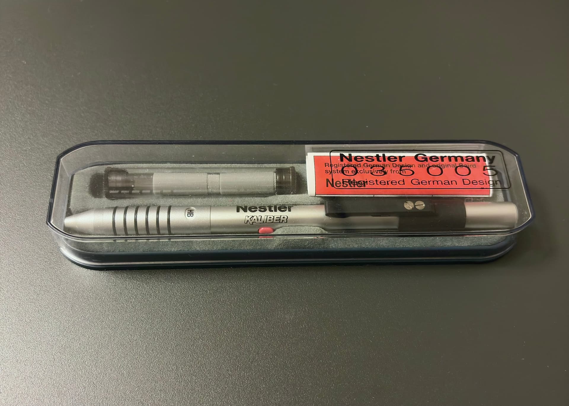 Many thanks to @Leonov for the assist in getting this prime specimen. I had only seen it occasionally on other blogs, and almost never on X, so this is less of a detailed review and more of my impressions. The Nestler Kaliber evokes a strange mix of emotions in me. As presented in its case, it says,“I am a serious piece of equipment, designed and made for professionals.” The bold German patent number 035005 checks out to a 1988 registration, per the superb entry on Graphography.