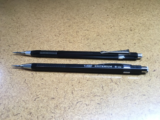 FYI: Bic also makes a Criterium model similar to your Bicā¦should you wander all the way to 2mm side of the street. Since they sharpen to a razor point, retract and resists breakage, some woodworkers like leadholders tooā¦(Bic model next to original French Criterium 2613)