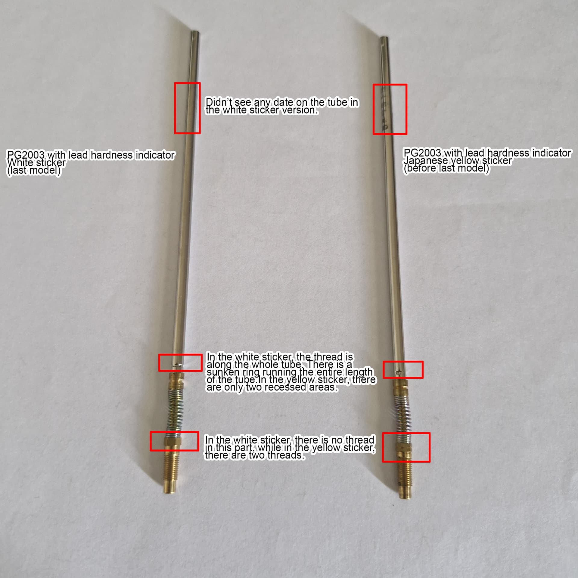 The length of the tube on versions with the lead hardness indicator is greater than that of the earlier versions. I didn’t measure it with a ruler, but it should be around 1cm. Despite the tube being longer, they are interchangeable; if you put the tube from the newer models into the older models, it works normally, and vice versa.