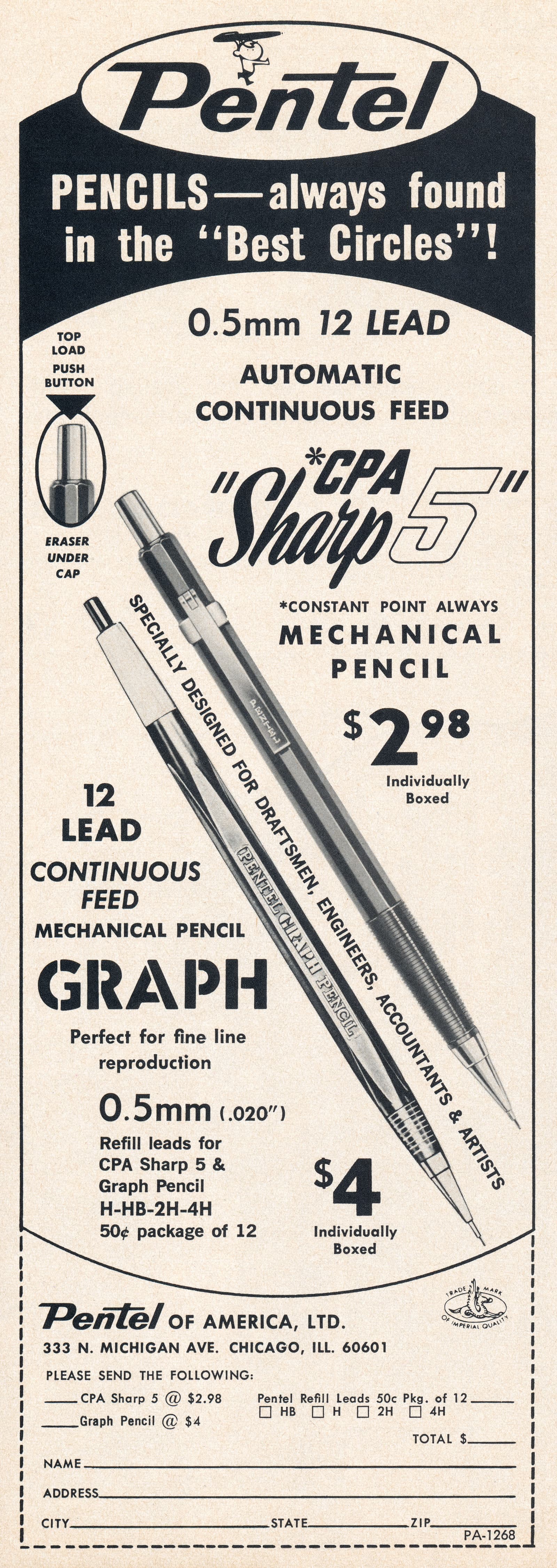 A Pentel ad from “Progressive Architecture”, December 1968.