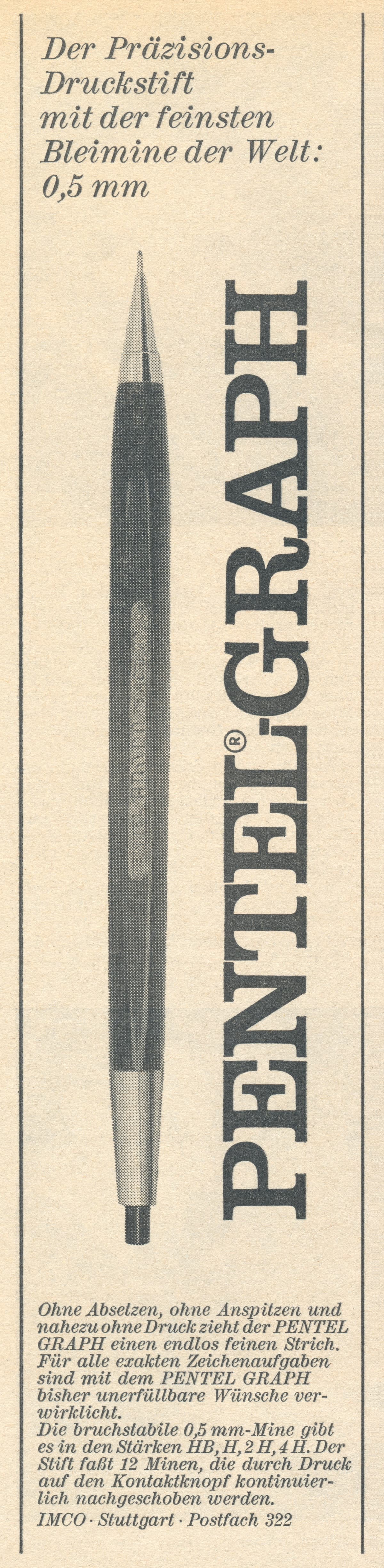 Here is a German print advertisement from 1966 for the Pentel GRAPH.