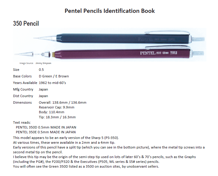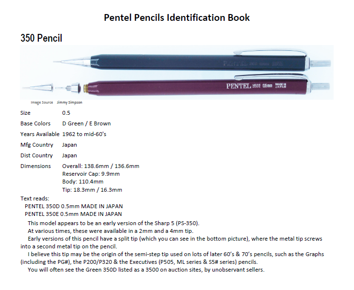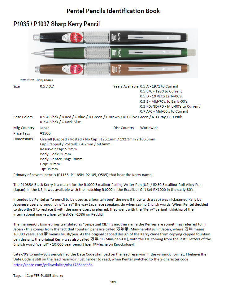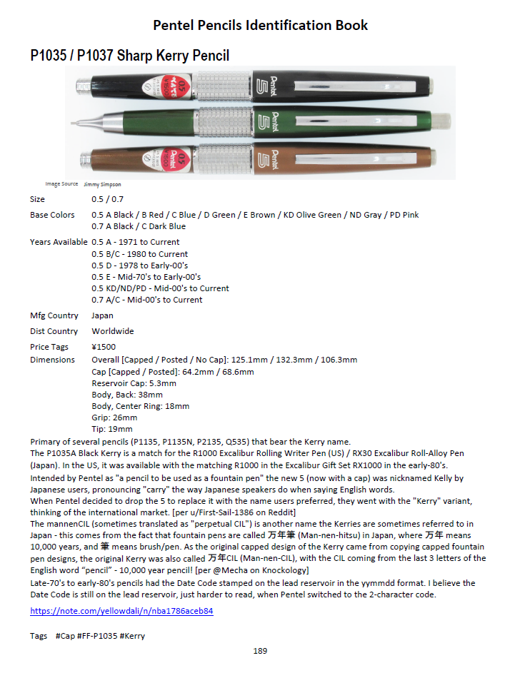 The problem with printing the book, is that I don’t have permission on all of the pictures. A lot of them are grabbed off the web, especially the more uncommon pencils, plus some are grabbed from Pentel catalogs.