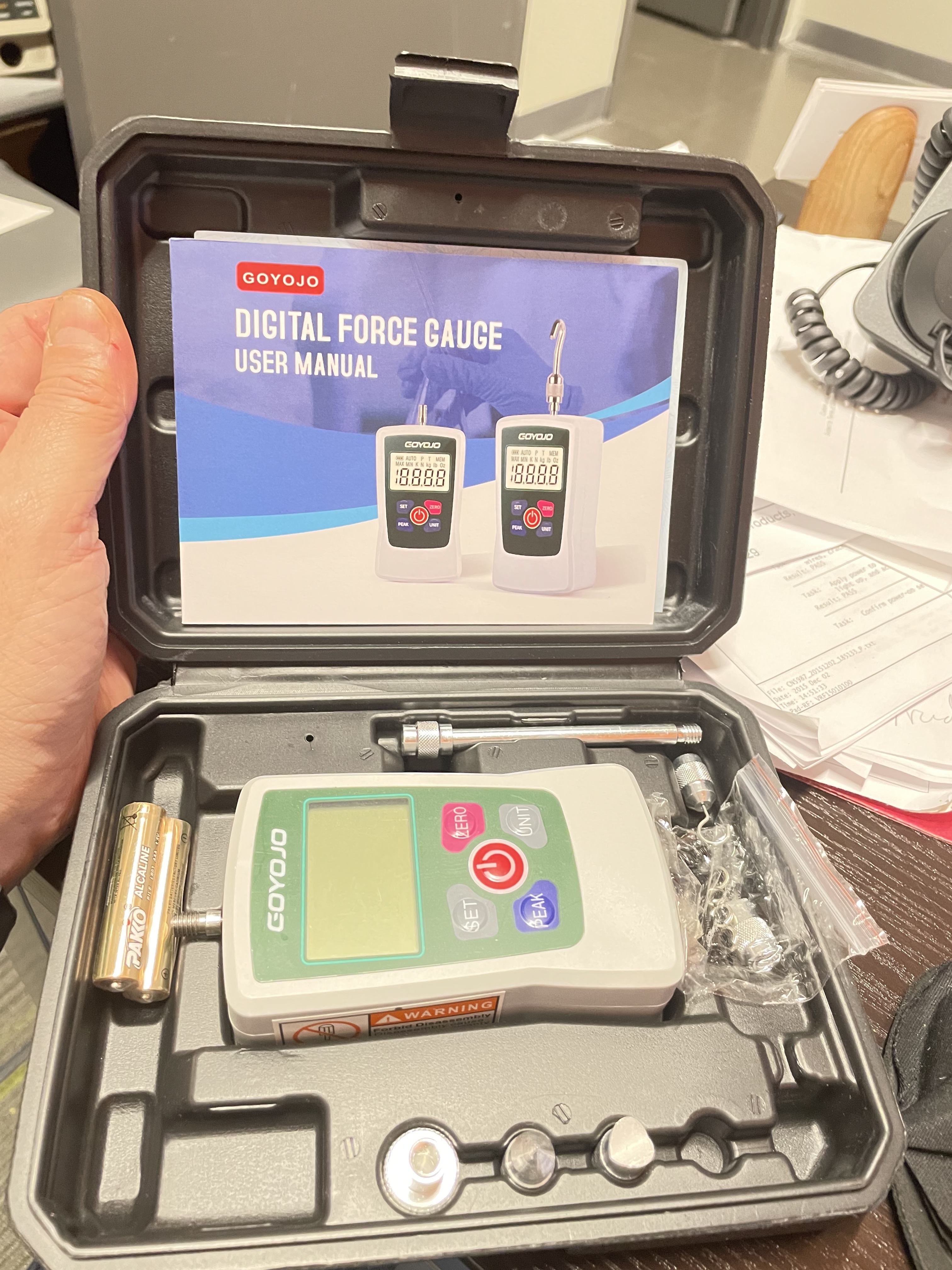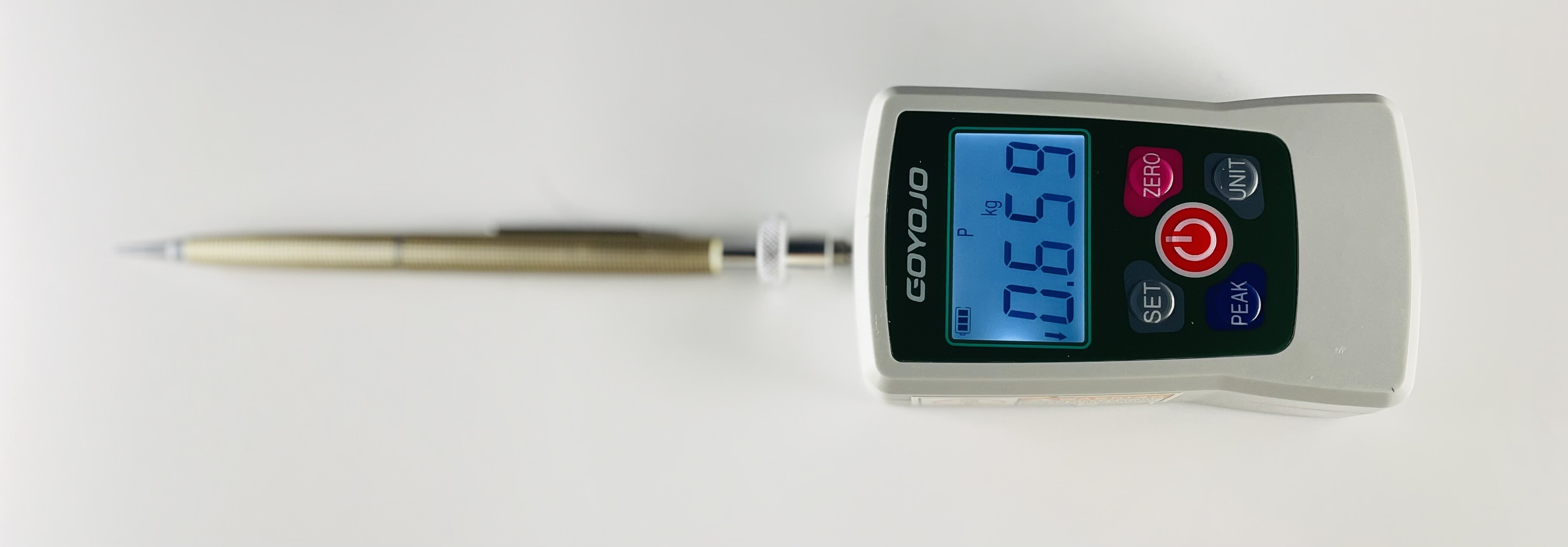 The force gauge has threads on the back, so I mounted it to a piece of acrylic so it would remain stable. Then I manually pushed the knock into it until I heard/felt or saw the lead advance.