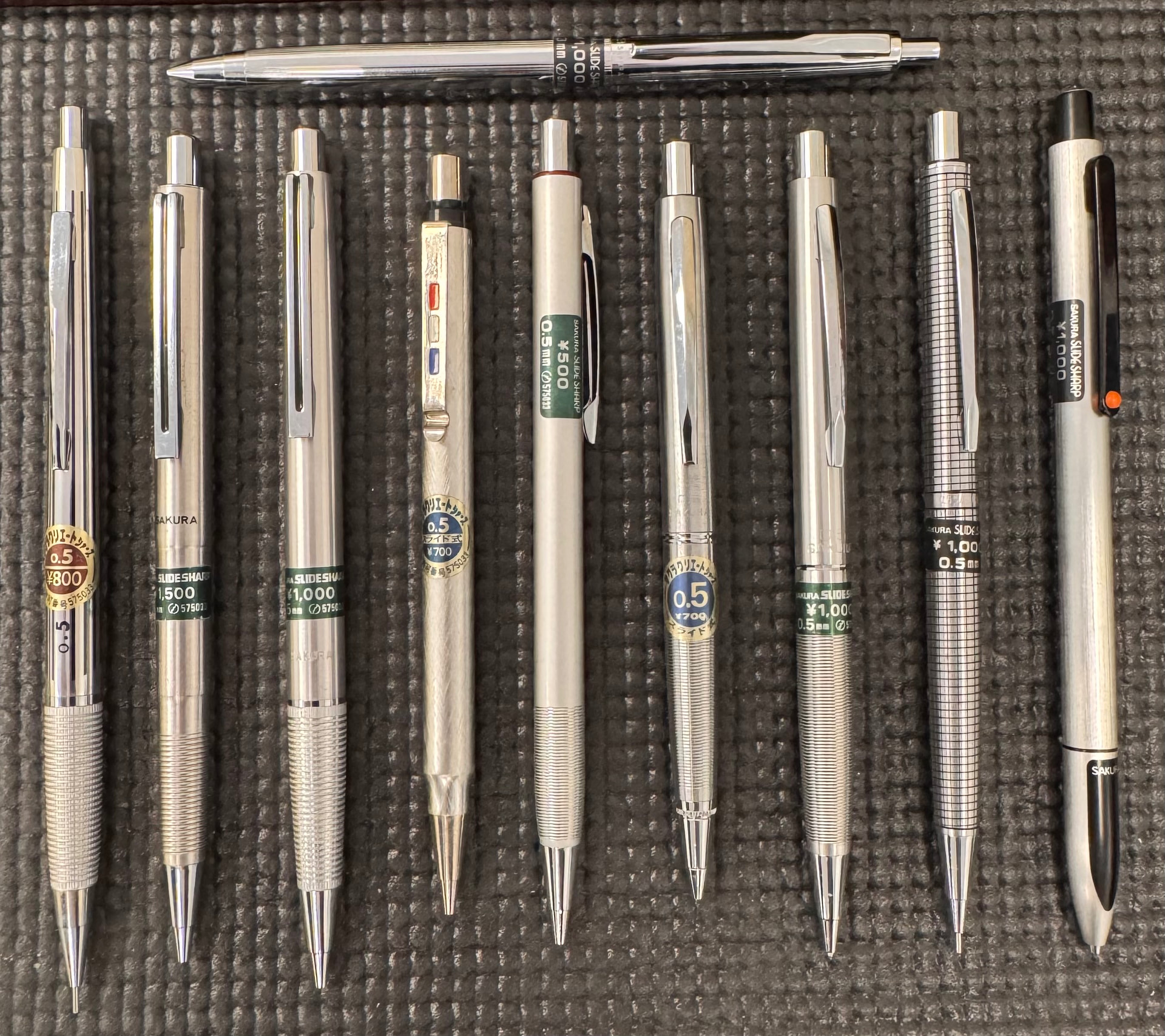 Nevertheless, I decided to collect them. They are easy to find for quite cheap on Mercari or Yahoo JP except the MS2000 model. I eventually gave up searching and bought it from that-famous-ebay-seller-in-Singapore for… quite a bit more than all the others combined (including a few spares). I have to admit that it feels much better than the others, heavier, sturdier, with a muted click. All in all a much more luxurious experience. But still way too expensive.
