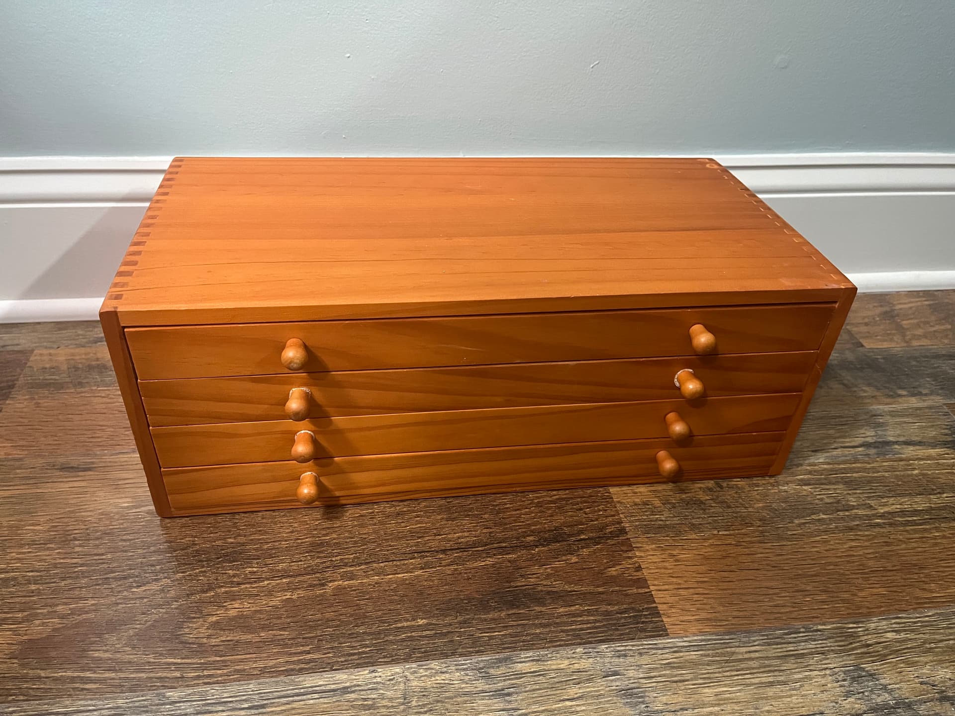 It holds 40 pencils per row, 200 per drawer, and 1,800 total in the cabinet. The outer facade is made from reclaimed wood. I am grateful for everyone that shared their storage set-ups and provided advice in the process! I’d love to get your thoughts!