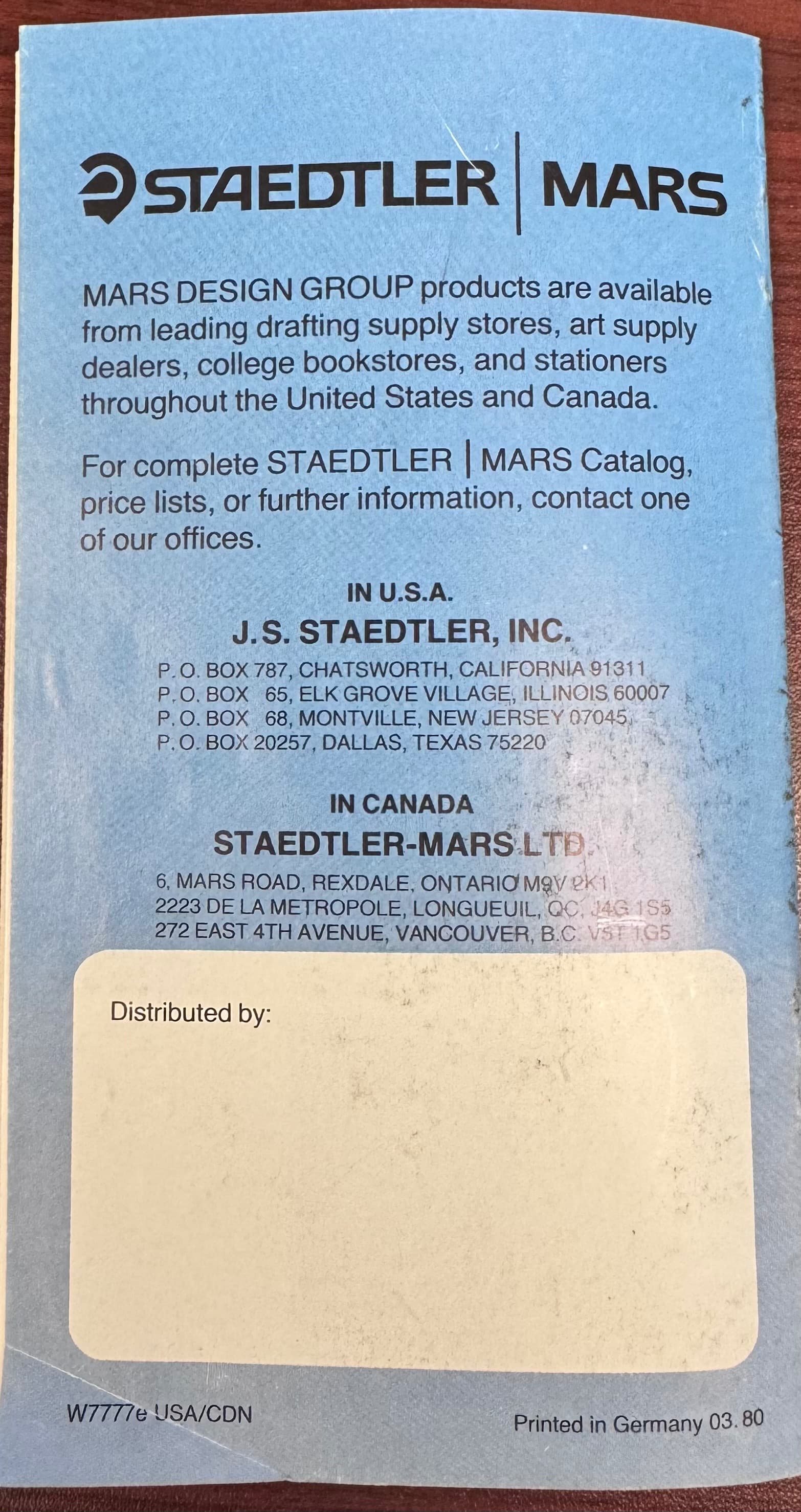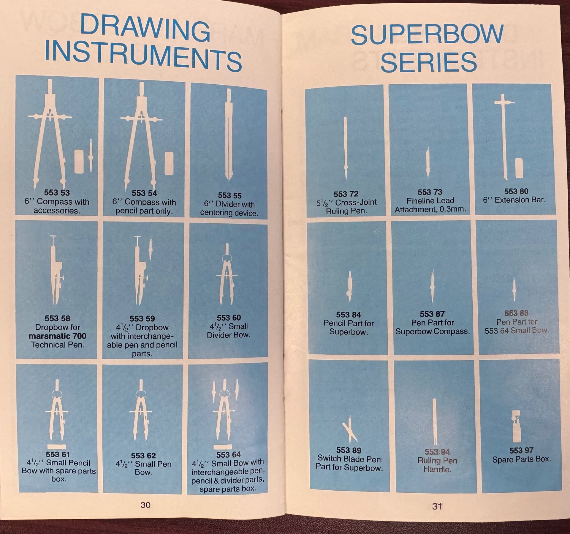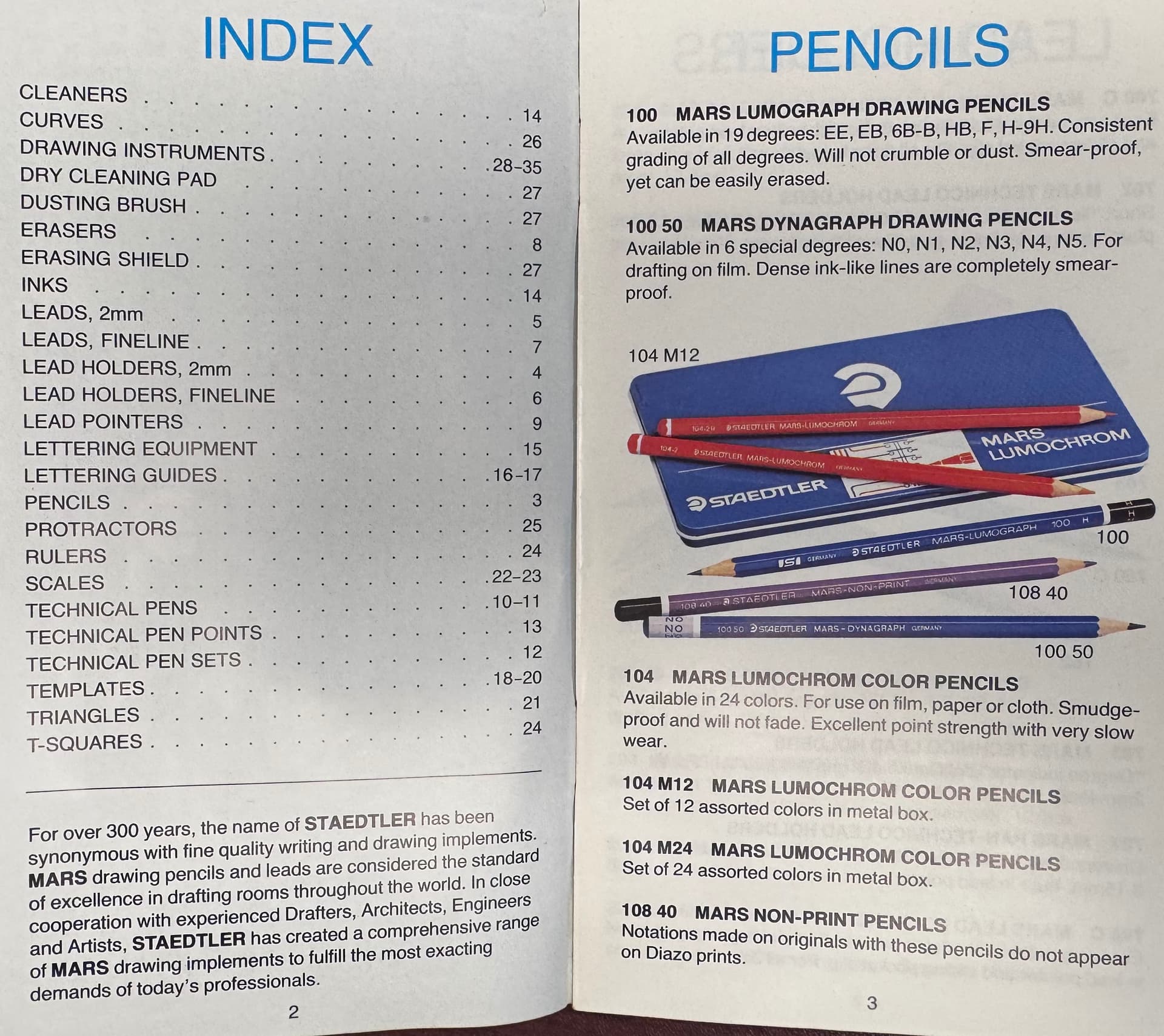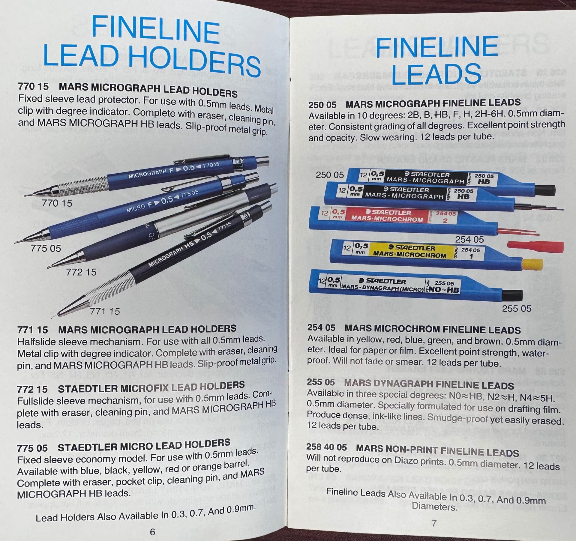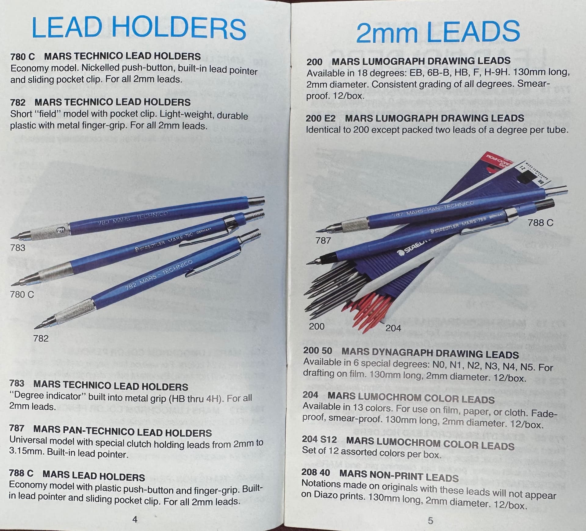 Super-interesting reference material: it shows the “Mars-Non-Print” lead (in woodcased pencil form, and in both 2.00mm and 0.5mm), but not the “Mars Non-Photo-Blue” lead in both 2.00mm and 0.5mm. I wonder whether the non-photo-blue came after or before that year.