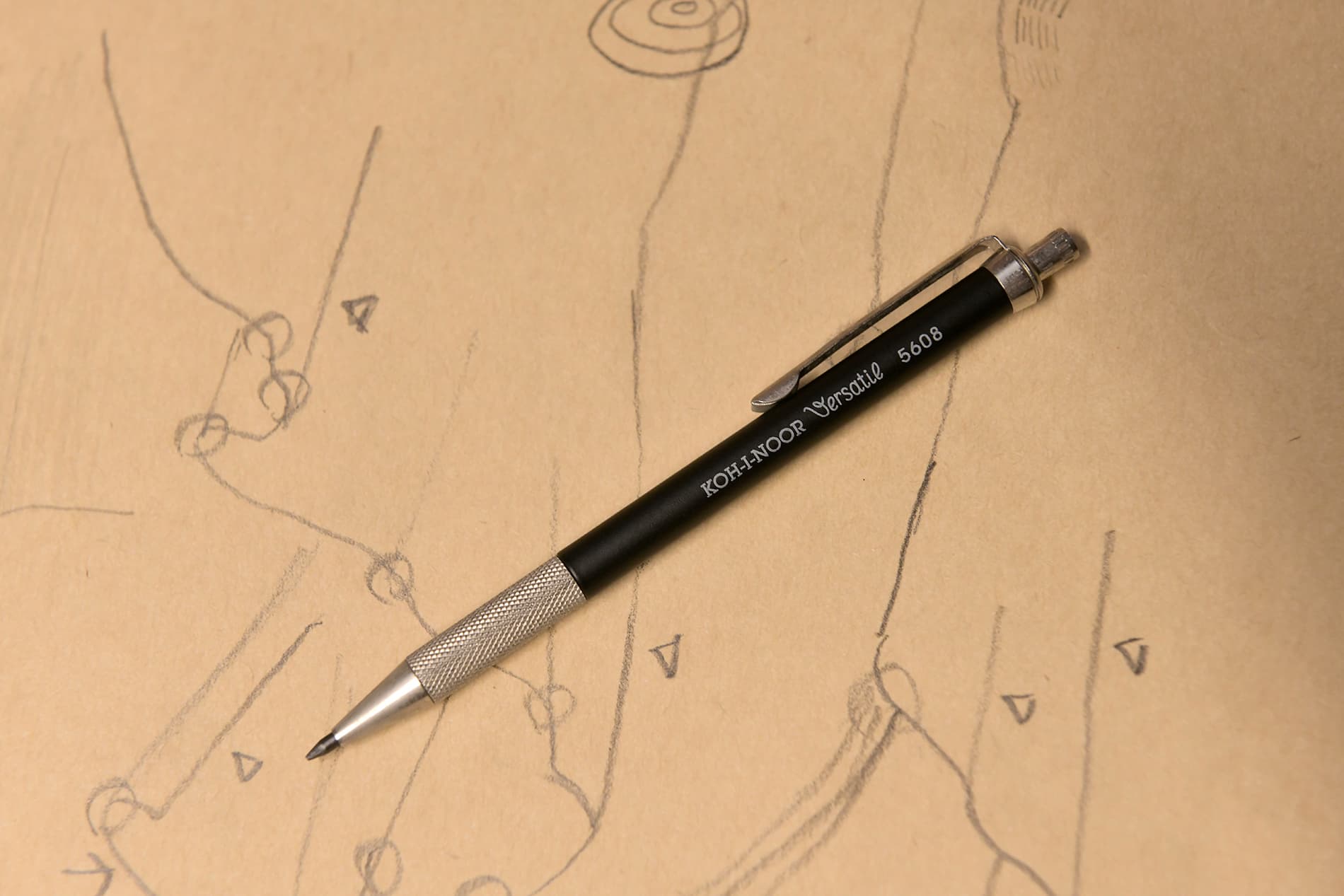 Bigger Leads for Big Surfaces, I also recommend the KOHâIâNOOR Versatil 5340 (5.6mm). Itâs not progressive. And the grip posture more like holding a wand than not the grip posture for writing. This size and hand position make it easy to sketch on walls or large paper sheets without breaking a sweat.