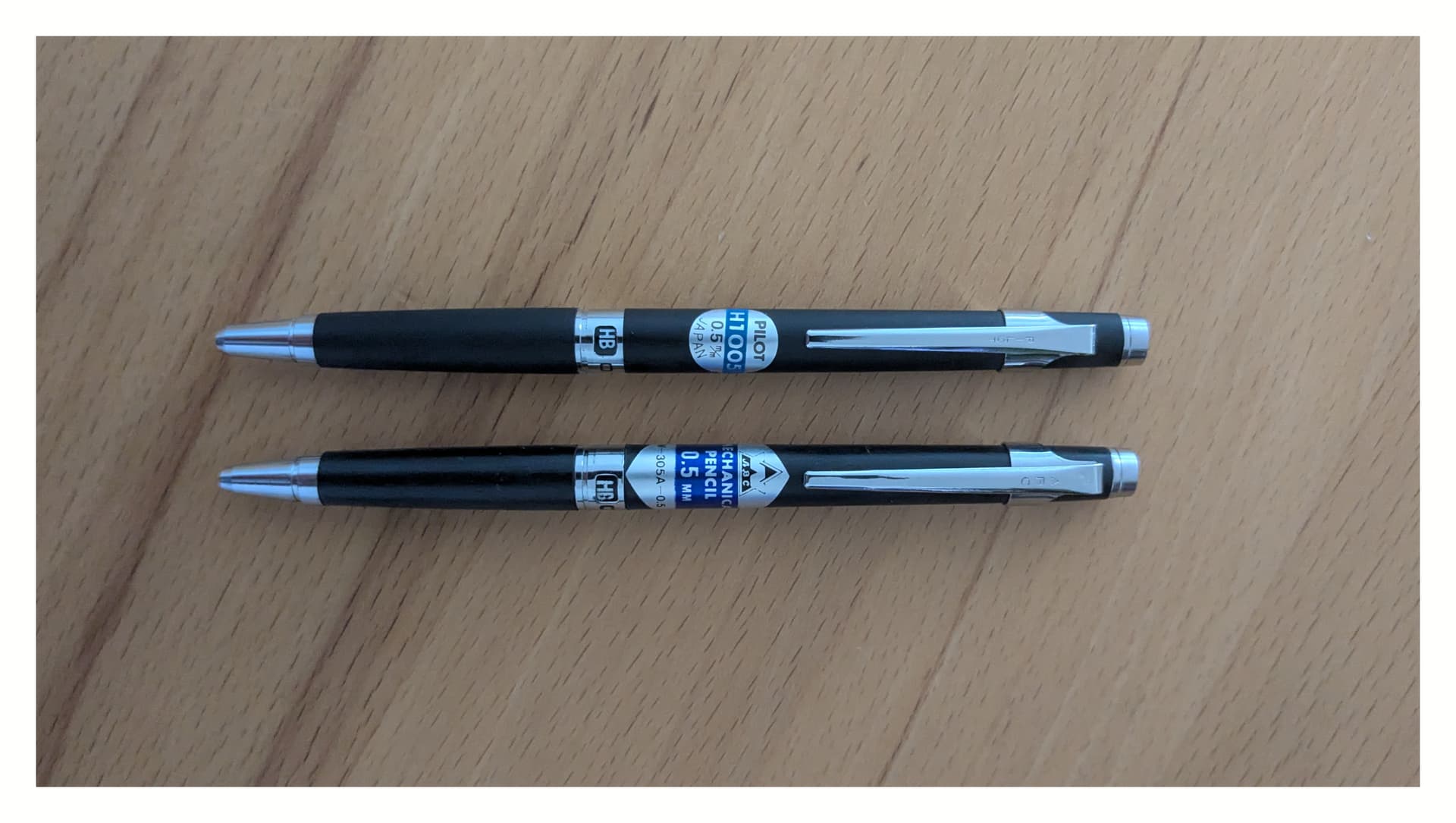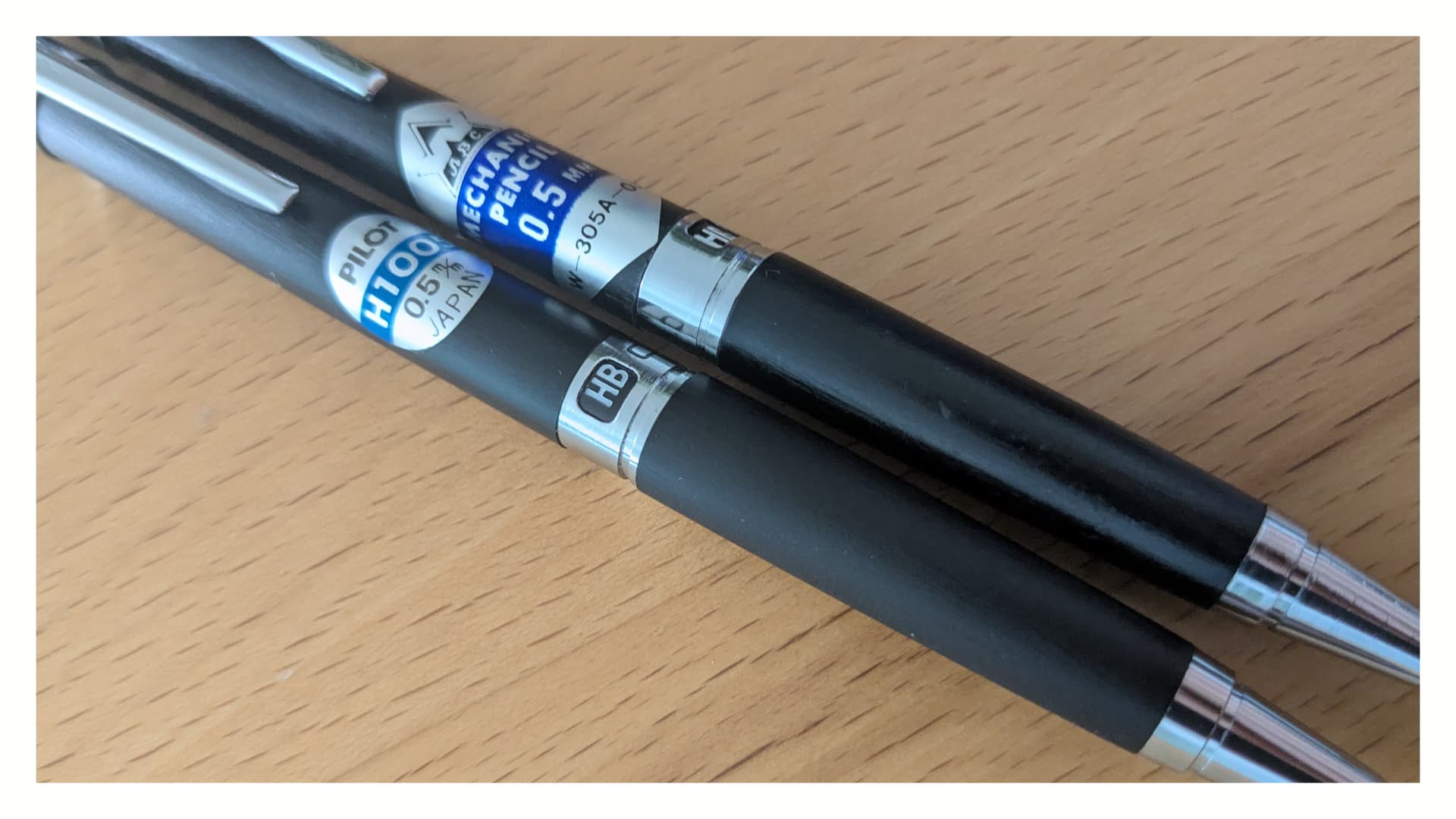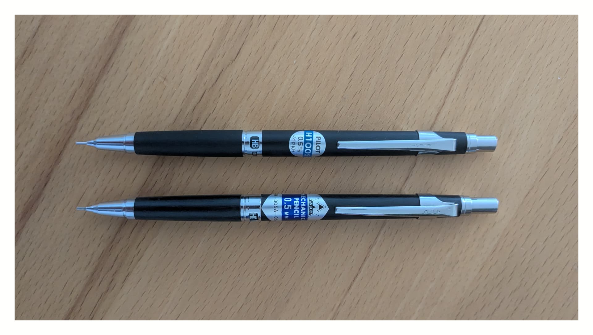 First thing. Even though they look identical, you can feel the difference with the W-305 in terms of build quality and materials used. The knock is also much sturdier on the H1005. It’s just clearly the better pencil.