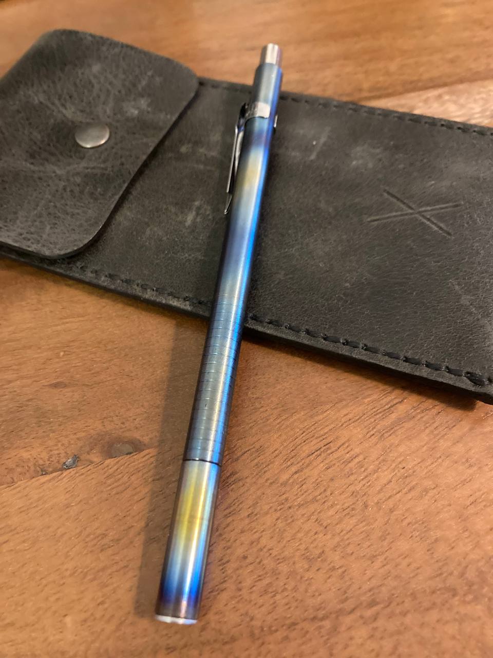 Second version i did today, machined after anodizing so there are some bare titanium highlights.