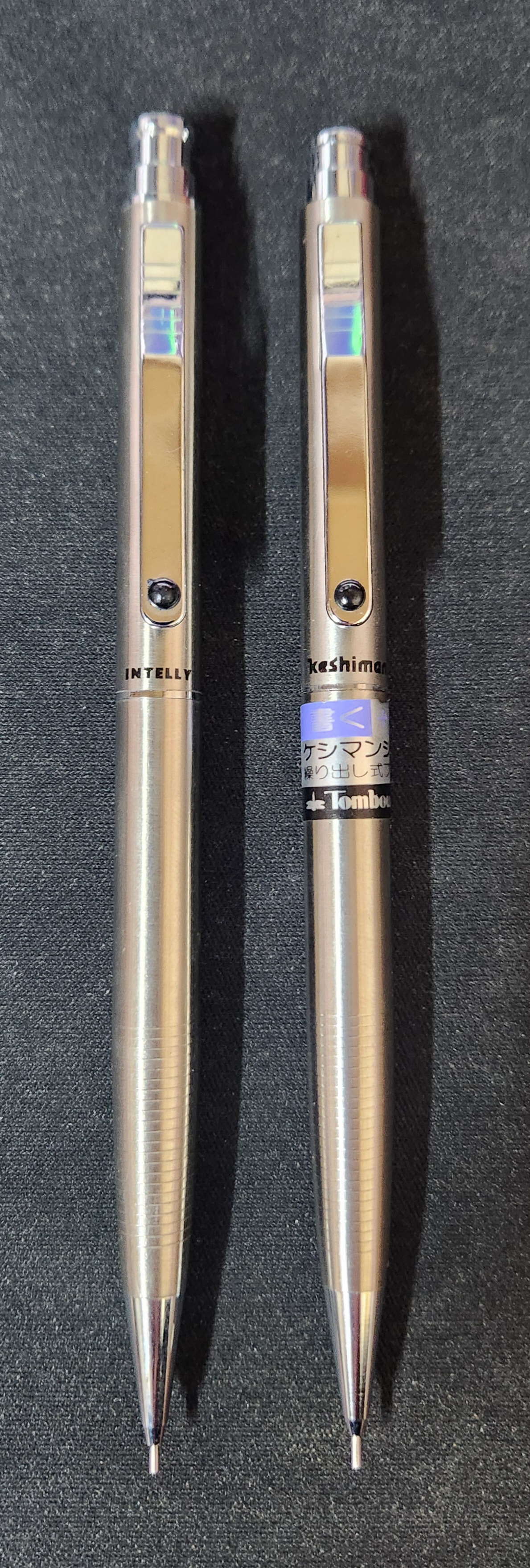I just found this interesting copy cat while perusing an old store today. Turns out Micro made a Keshiman knockoff in exterior design only. There is no twist eraser. It seems to be well made though. It is a bit lighter than the Keshiman however, probably mostly due to the lack of the twist mechanism. It’s called the Micro Intelly. It’s 20.6 grams as opposed to the Keshiman’s 26.2 grams.