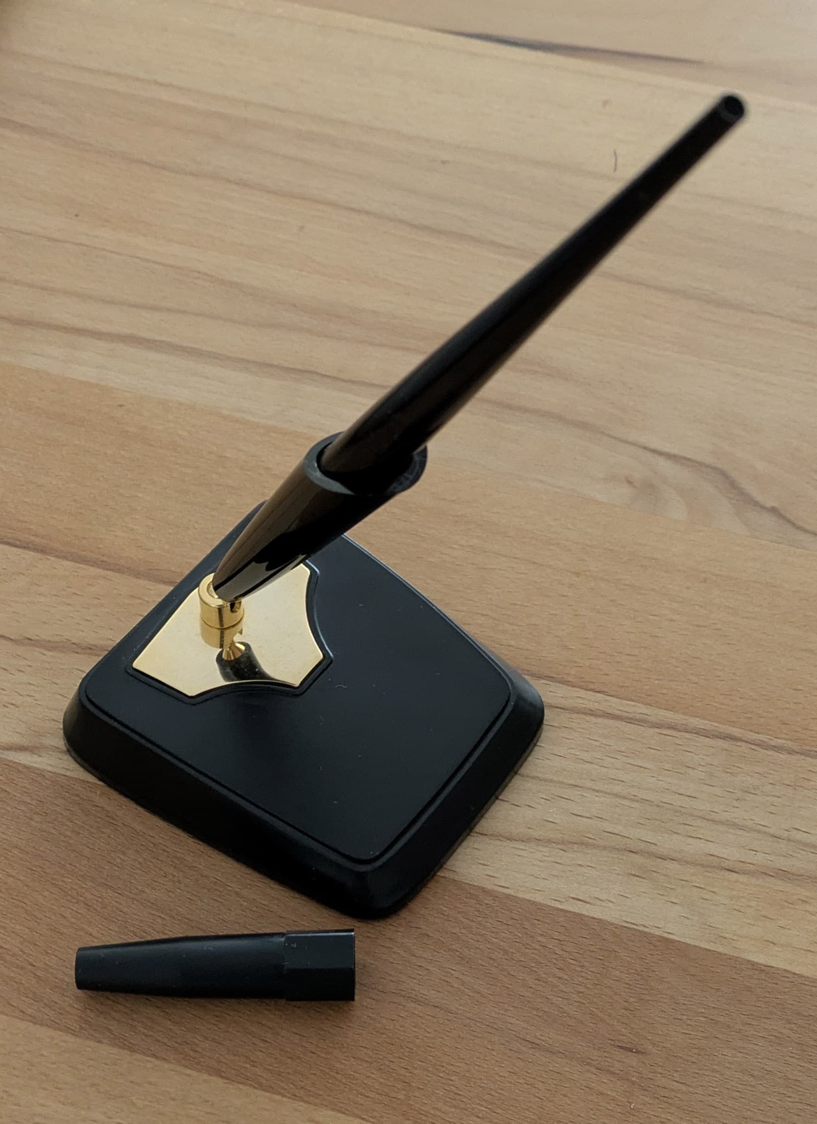 I wish these desk pens had a retraction mechanism but most were used with a pen stand/holder (at the bank) etc. One of my big hopes and letdowns was the Kokuyo Mistral desk pen, because while the slender pencil is a body-knock, the pen is not. Similarly, I have beautiful elongated desk pencils for Sheaffer and Cross but the pens have an always-exposed tip.
