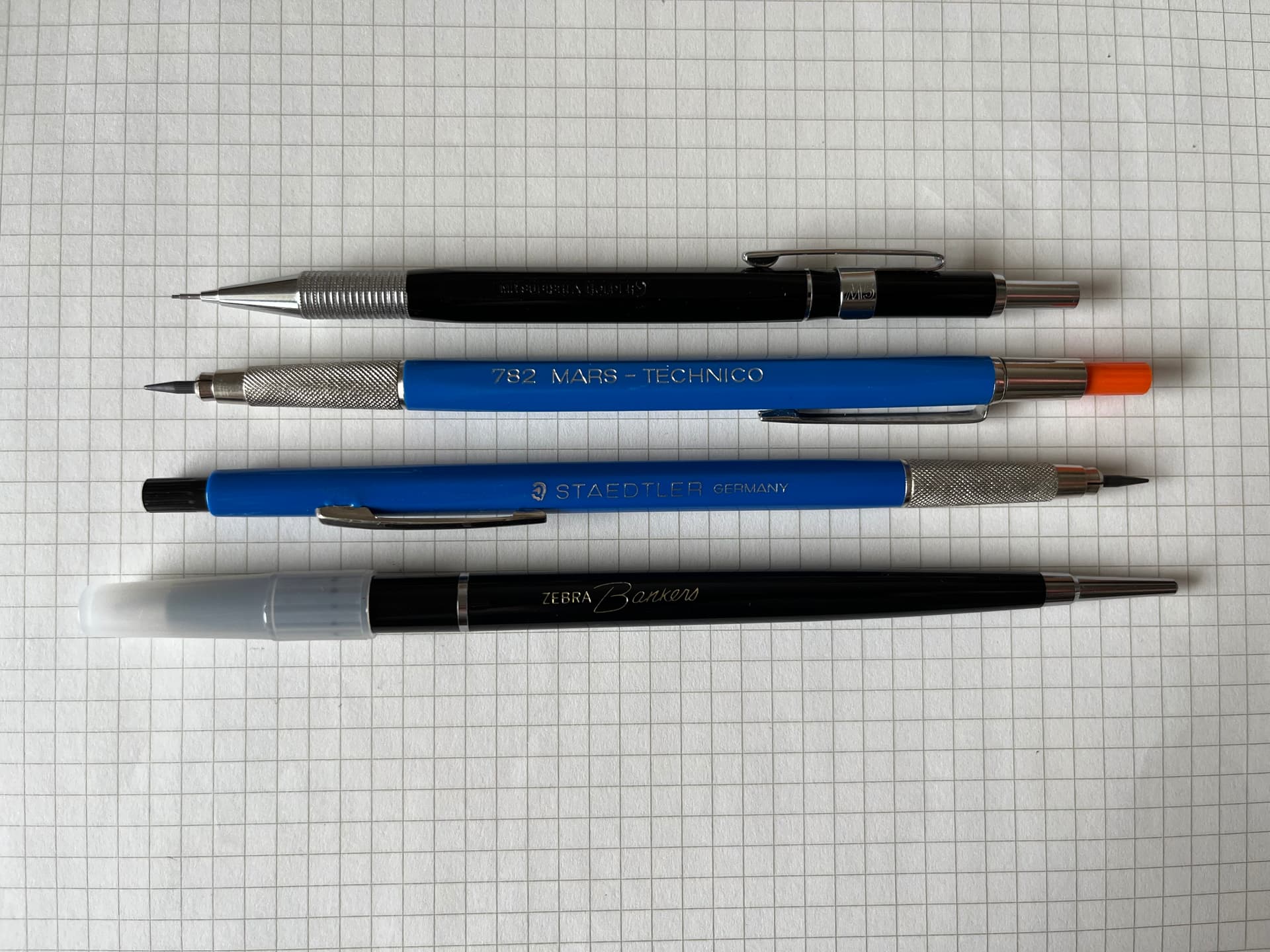 Favs from the lot- Tombow drafters, quatros and the Uchida.