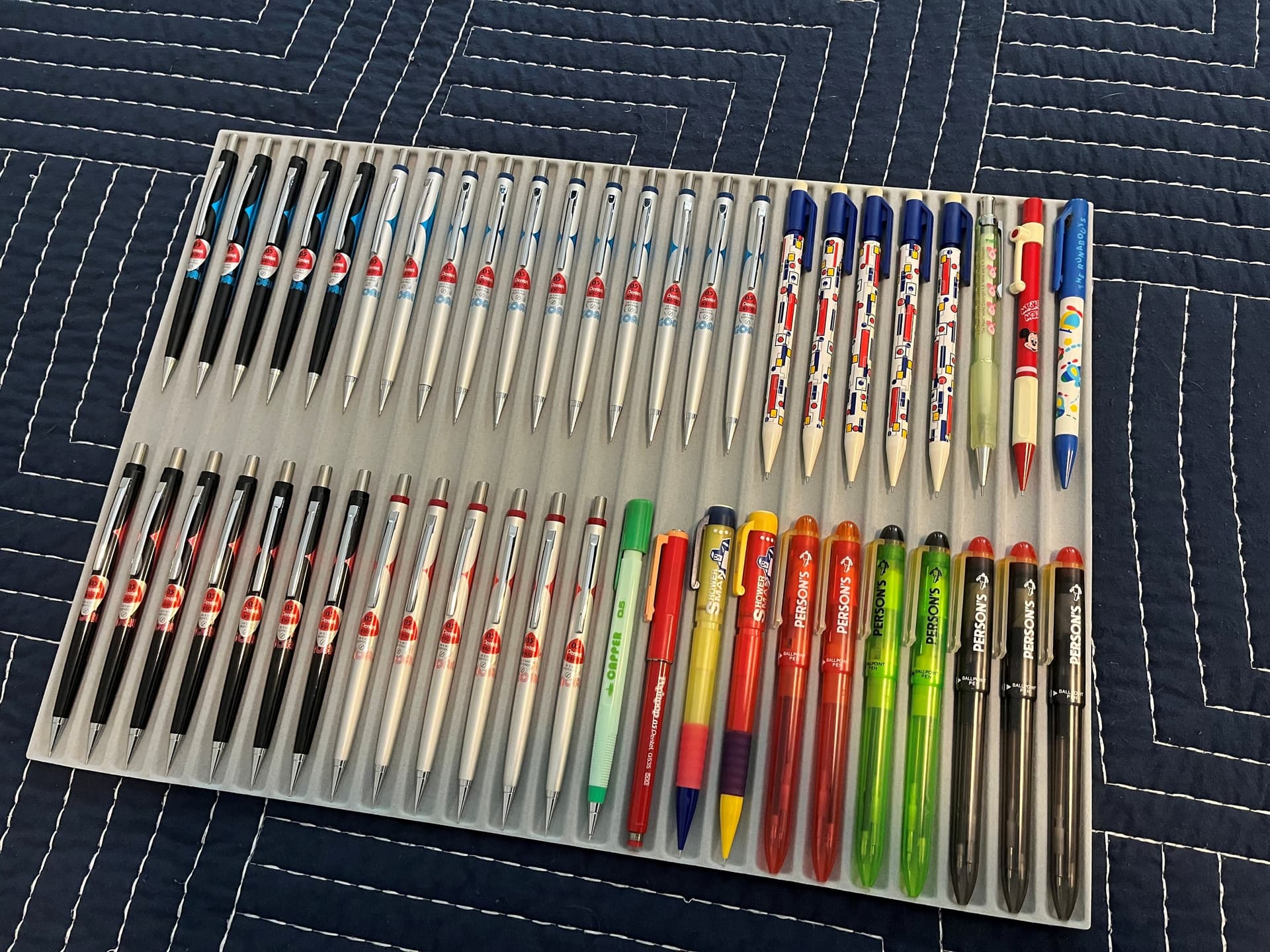 Could you get me a good shot of the Person’s PQB1 Multipens. A side-by-side of the 3 colors you have on a white background, for the Pentel Book.