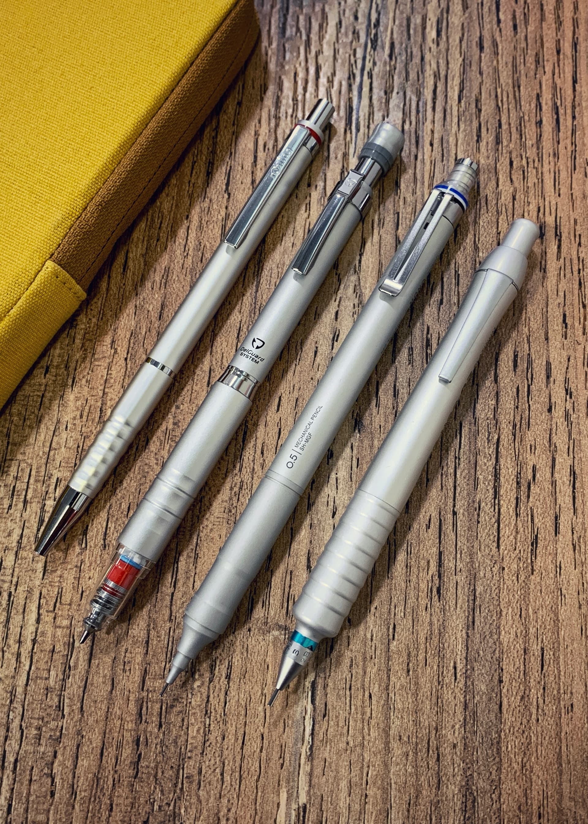 When I use the plastic-bodied TK-Matic, I’m afraid it’ll break, it doesn’t feel as sturdy as the Orenz Nero. My first impression when I hold the pencil is: This is fragile. The TK-Matic L feels sturdy, but the body slips in my hand where the pencil rests. However, I still prefer the plastic-bodied version, it gives a very good sense of speed and drafting.