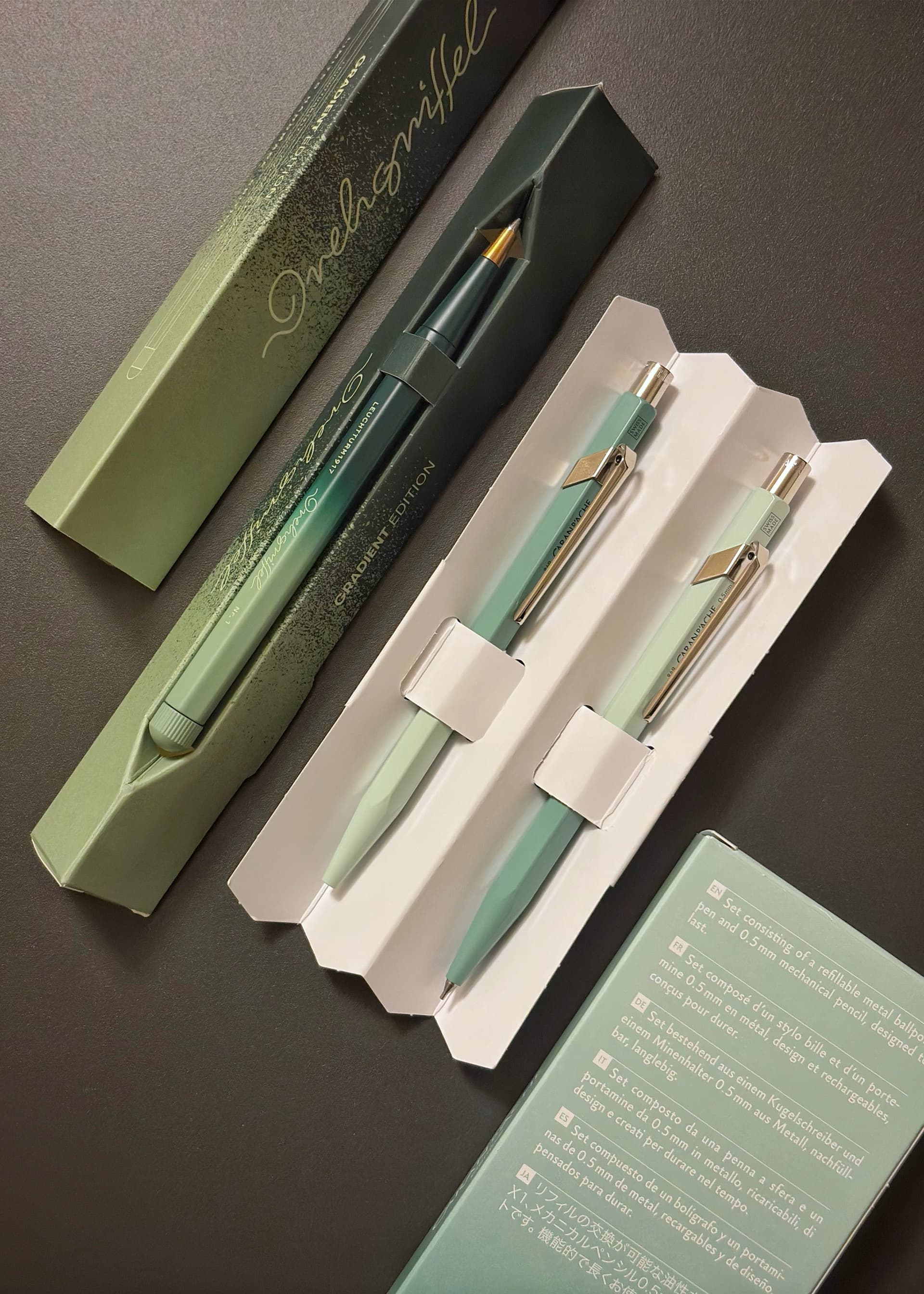 • Caran D’Ache ‘Misty Forest’ 2025 limited edition set - 849 ballpoint & 844 mechanical pencil in 0.5mm
