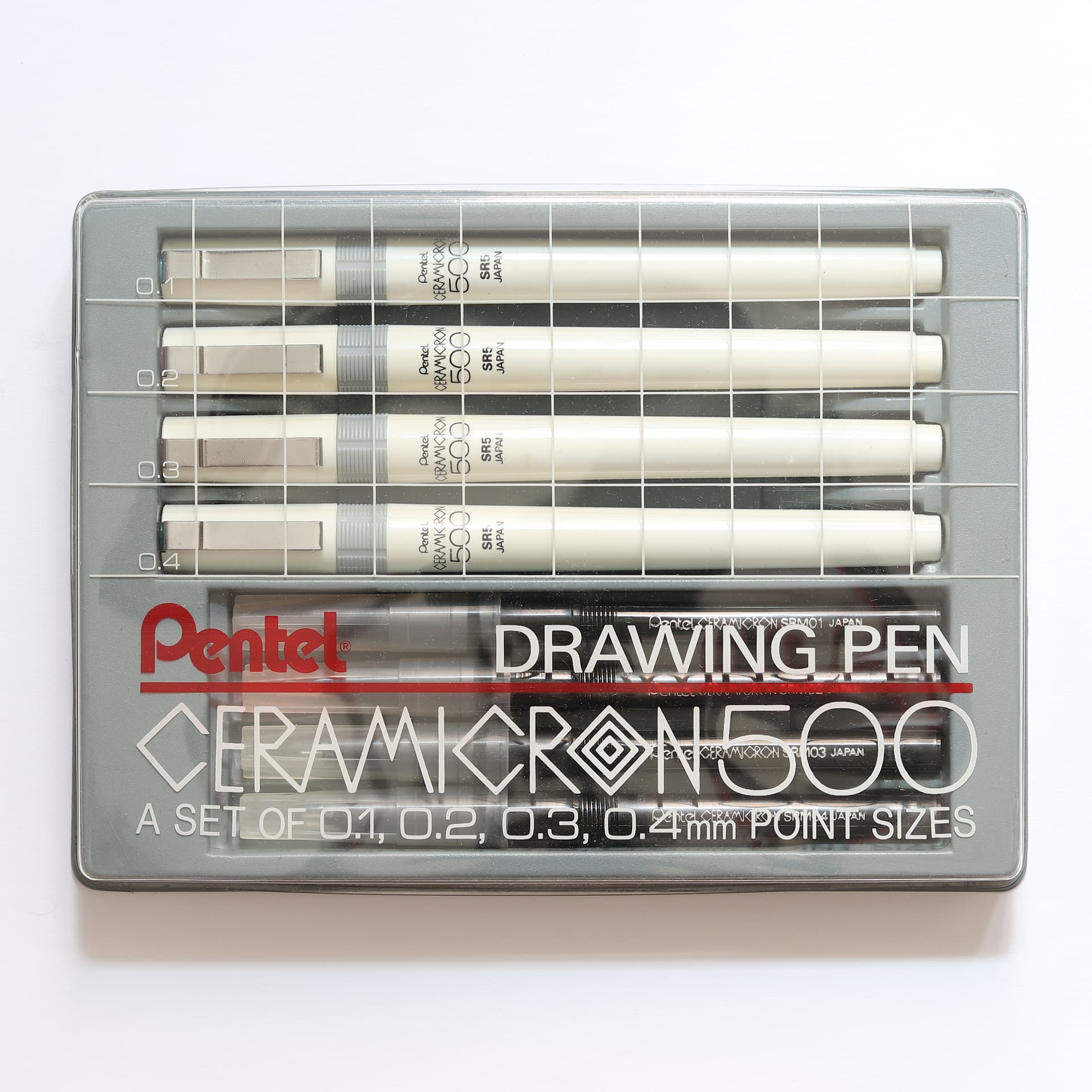 It seems that Pentel was in the habit of reusing the same packaging for technical pens and mechanical pencils, such as this P200 four-pencil set that matches the Ceranomatic set I posted above.