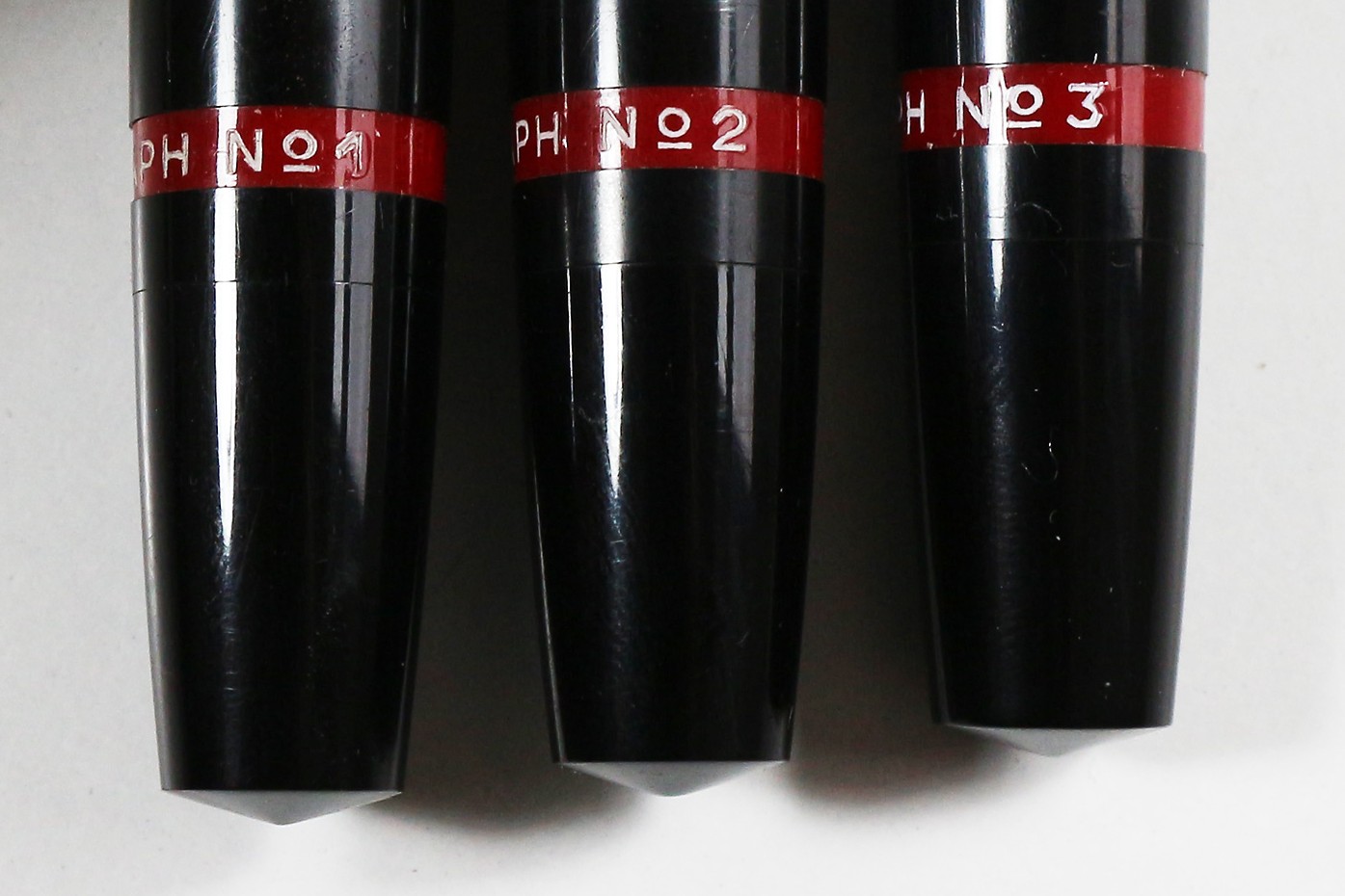 A detail I enjoy from the first generation is the representation of their numbers by subtle concentric circles engraved on the cap finial (in the next iteration the circles were filled with white paint).
