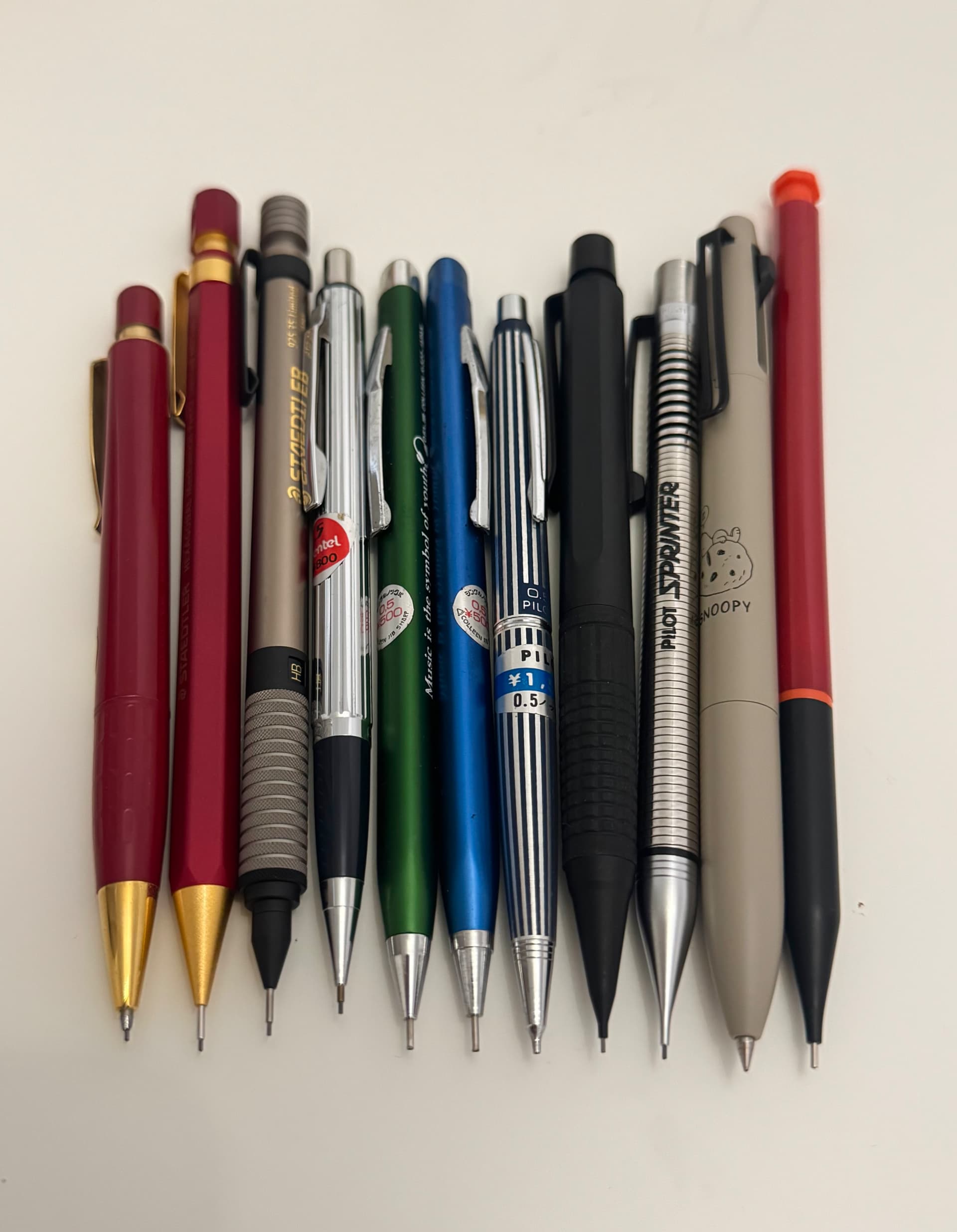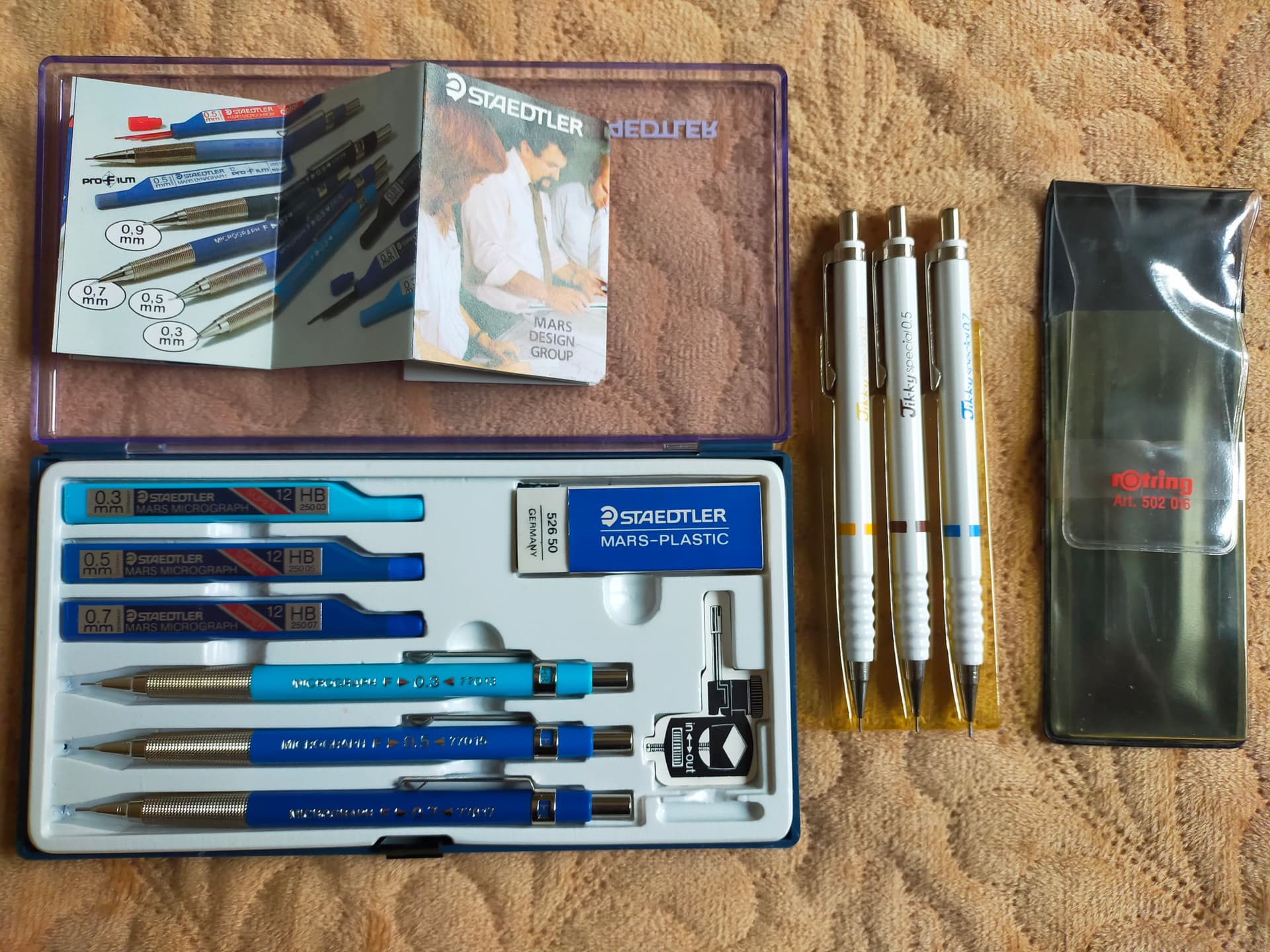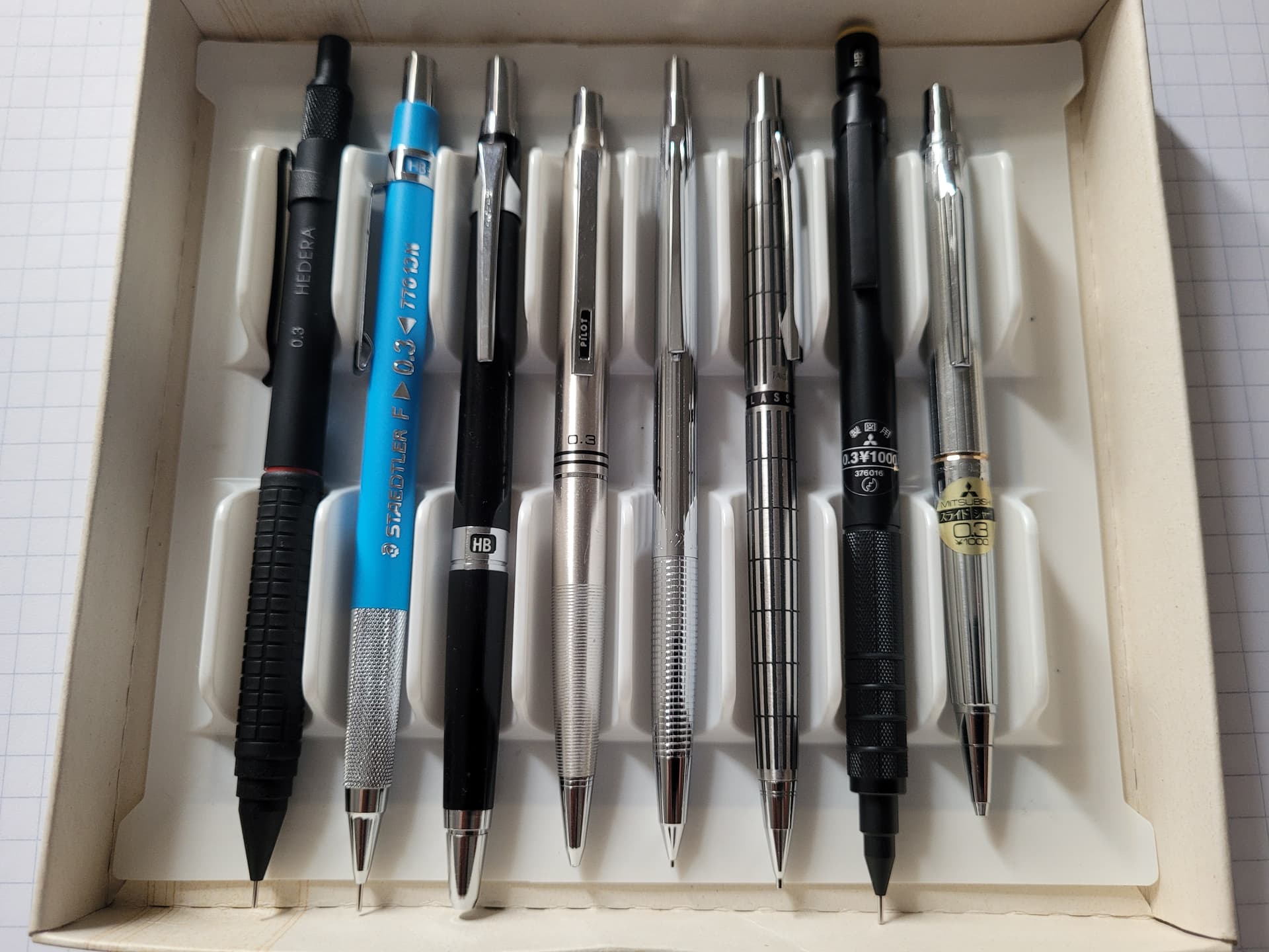 An unexpected detail, on the rotrings the 0,3 has a circle on the cone, while the 0,5 has none. The contemporary drafting Staedtler and Faber-Castell had nothing on the 0,3, one ring on the 0,5, two on the 0,7 and three on the 0,9. Rotring got the first two inverted. Why?