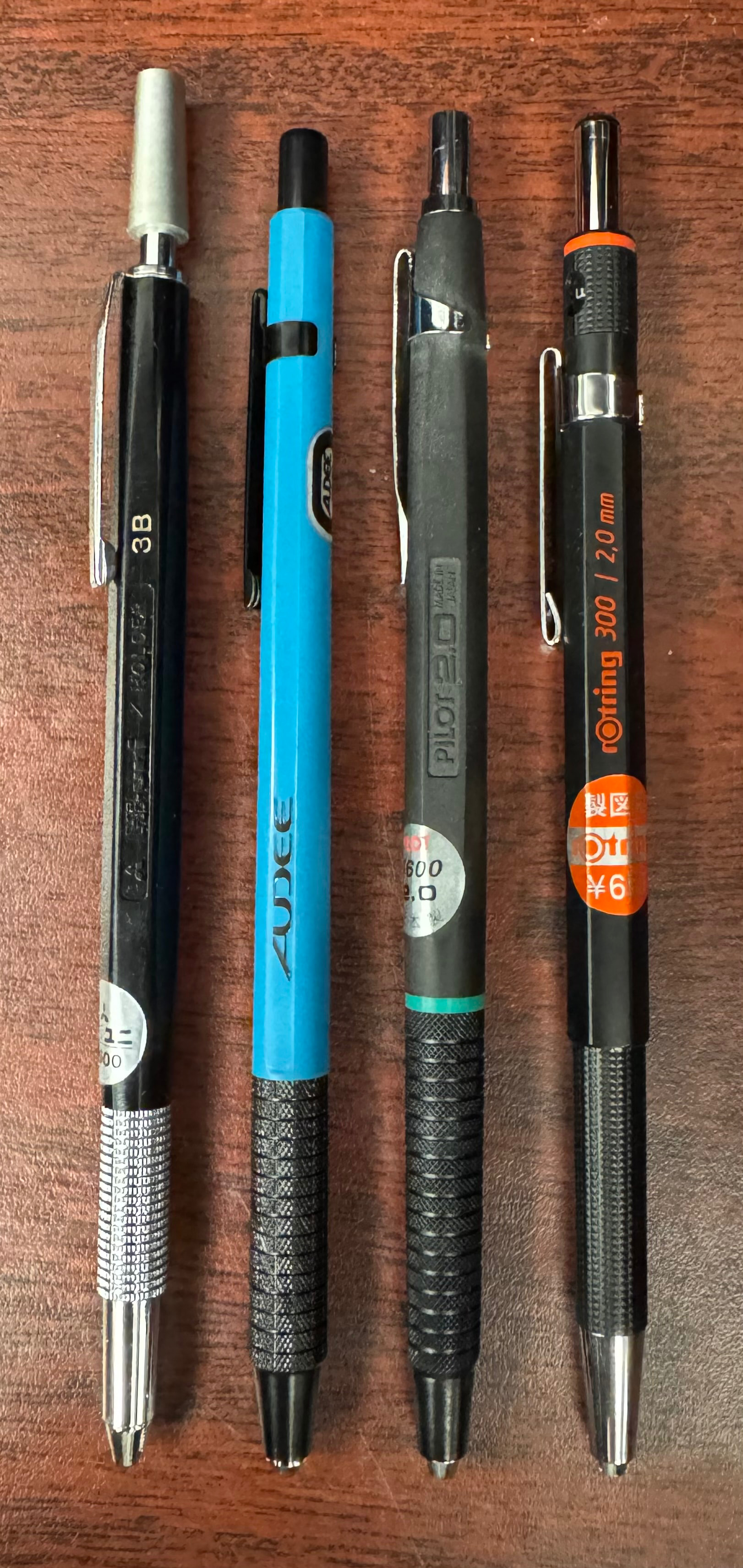 Found some interesting knock-offs at an old stationery store today. Do you see the resemblance? The quality is significantly worse - plastic clutch, rough actuation, plastic retractable lead sleeve - among other quality issues. A fun oddity nonetheless.